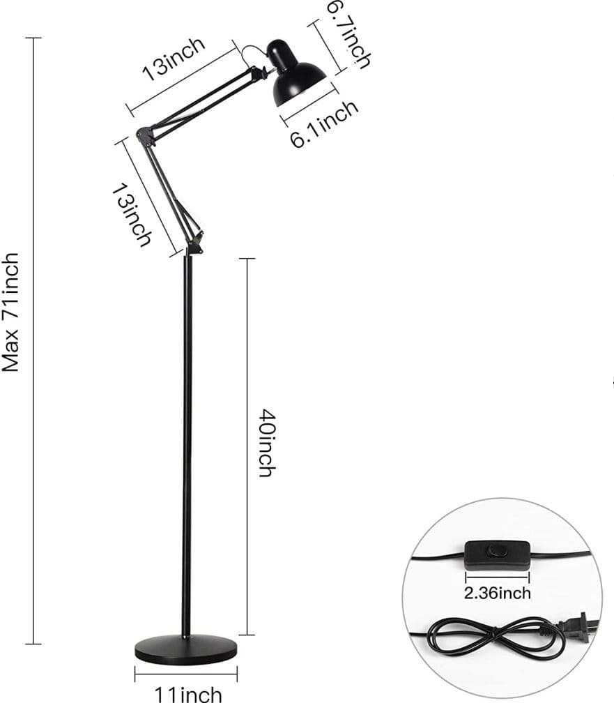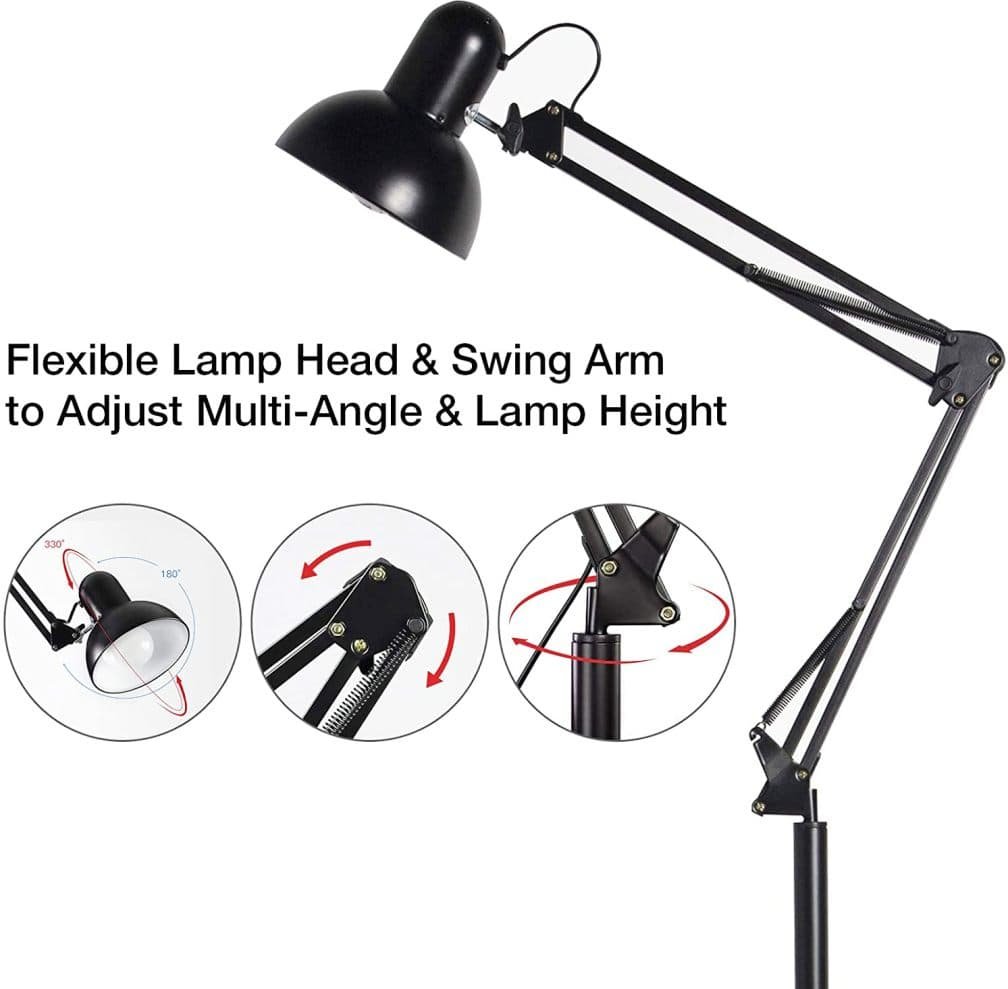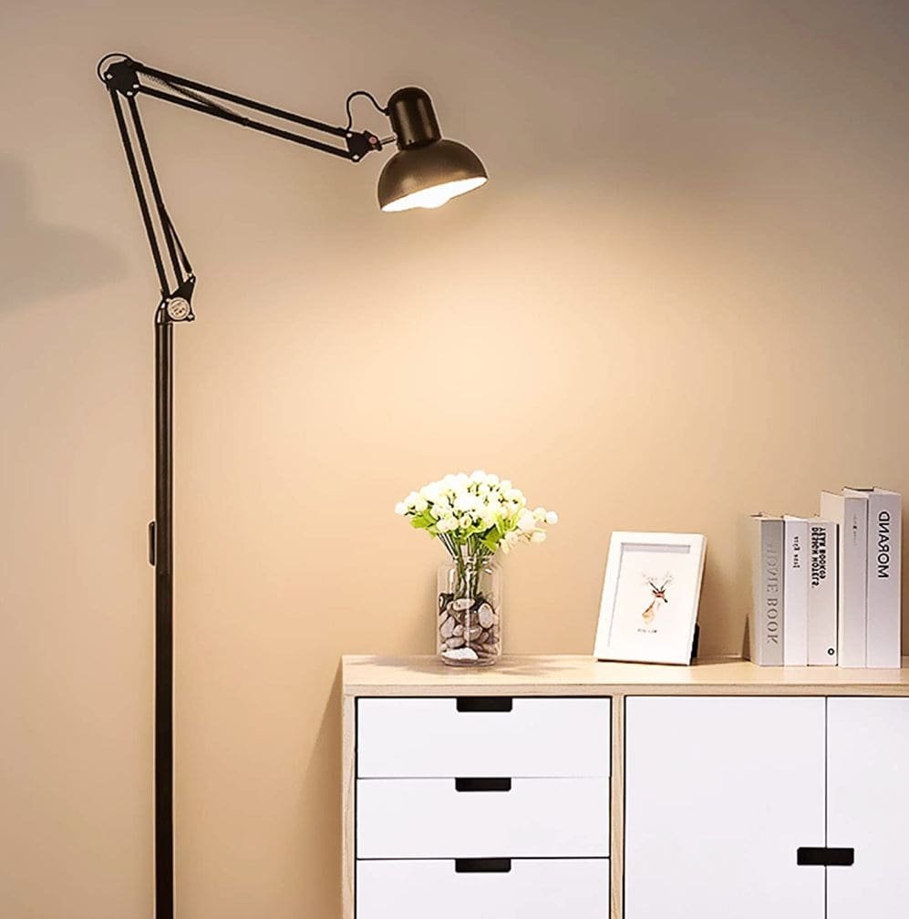 Modern Swing Arm Tall Industrial Black Finish Metal Floor Lamp For Home And Hotel