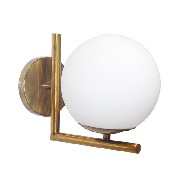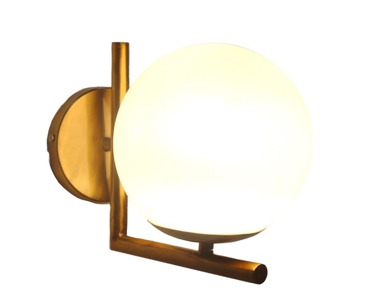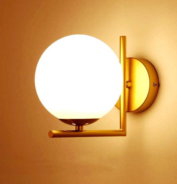 Modern White Glass Globe And Antique Golden Finish Stand Wall Sconce Lamp Light For Home Decoration And Lighting