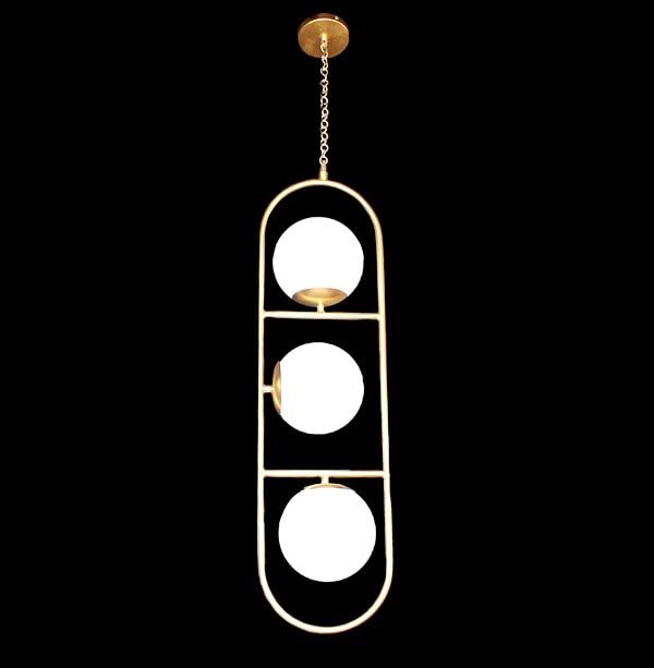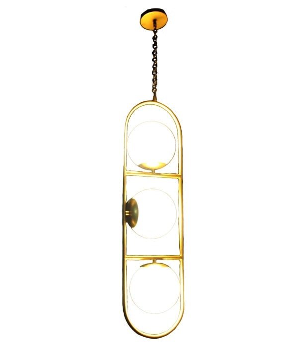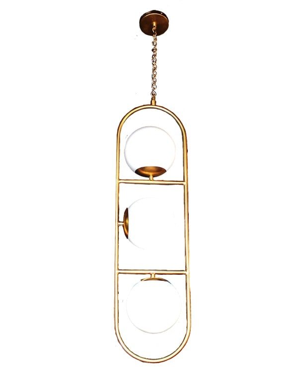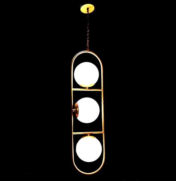 Moon Three Glass Ball And Gold Finish Metal Body Pendant Light For Cafe And Restaurant Decoration And Lighting