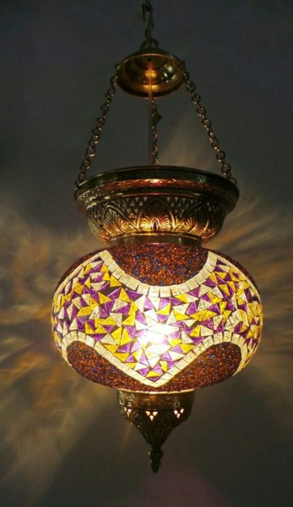 Moroccan Multi Color Glass Design Globe Shaped Pendant Light