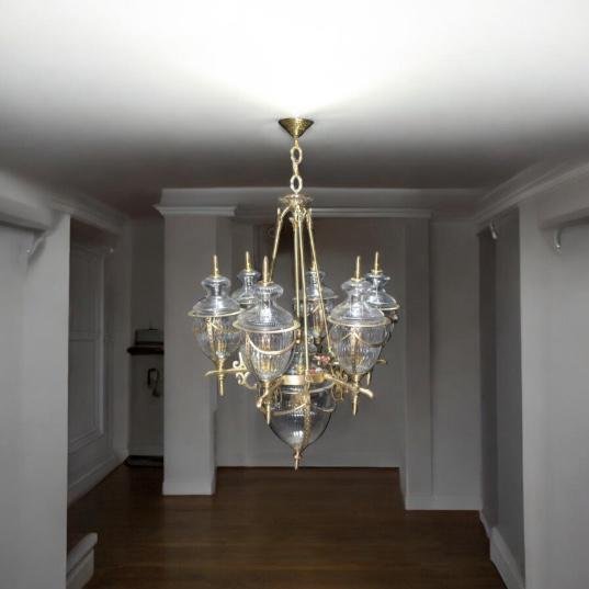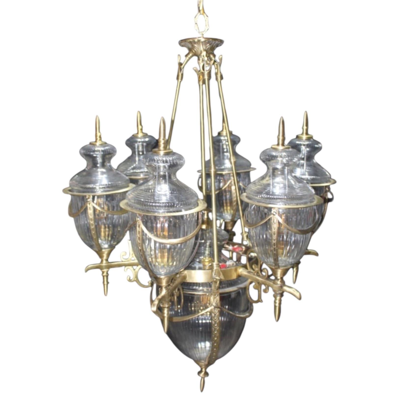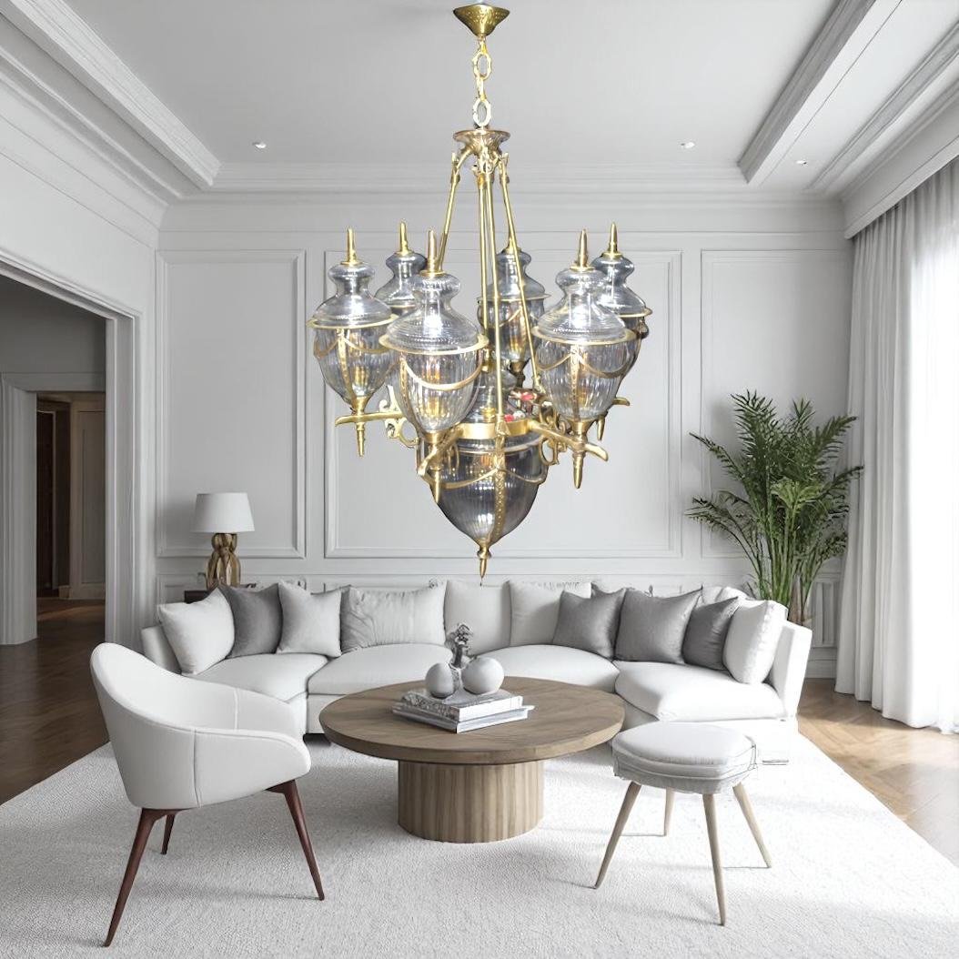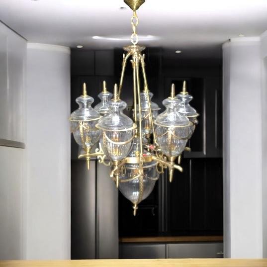 A very beautiful chandelier made of brass and glass, which looks amazing and after its installation, a different type of beautiful view will be seen
