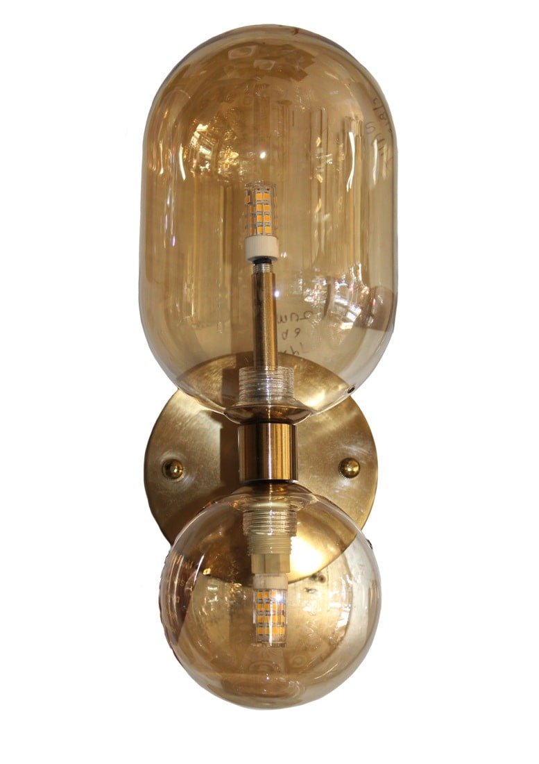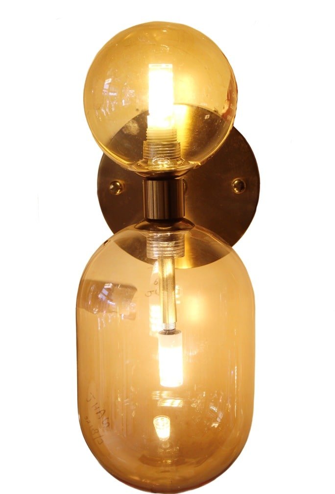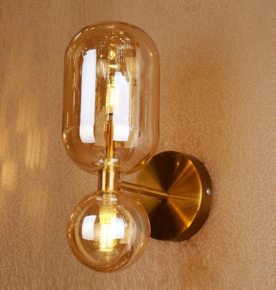 New Amber Two Different Size Glass Lamp Modern Golden Finish Wall Mount Lamp For Bedroom And Living Room