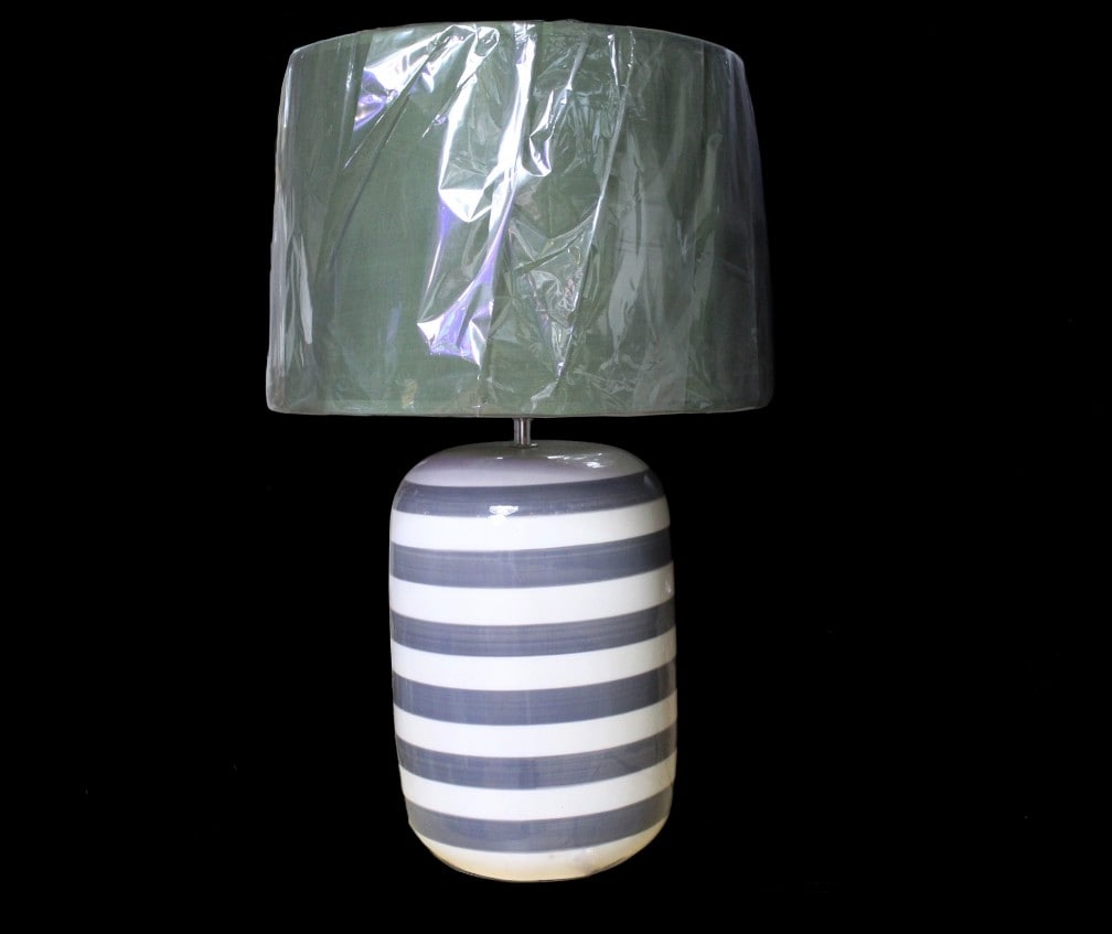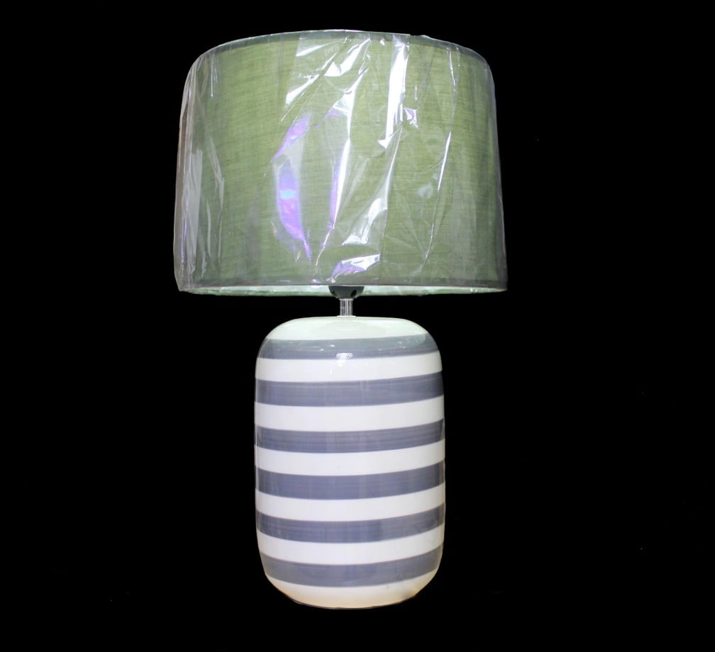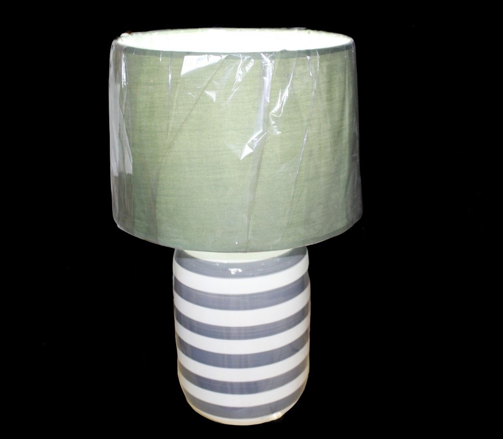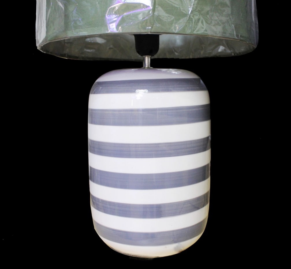 New Grey And White Striped Art Modern Design With Fabric Shade Table Lamp And Bedside Lamp