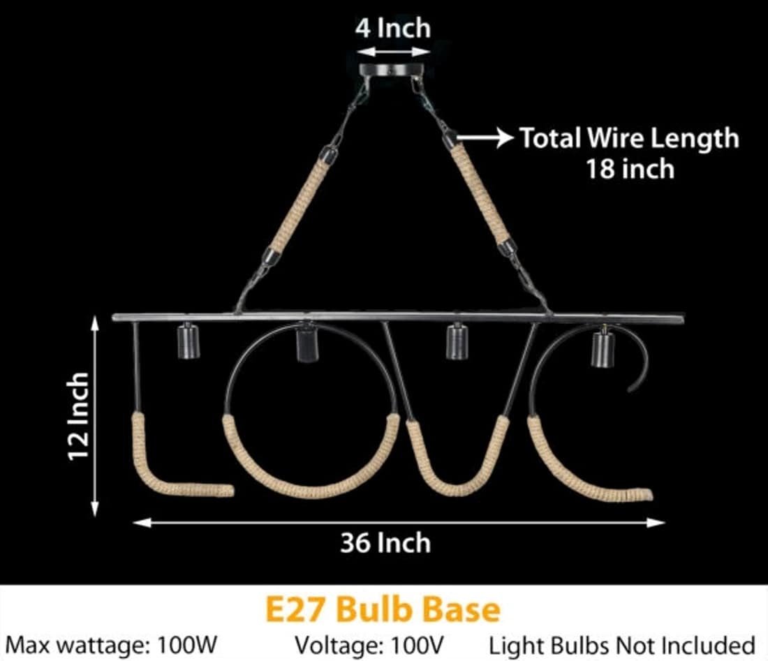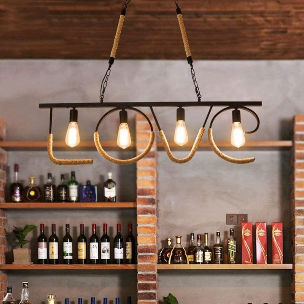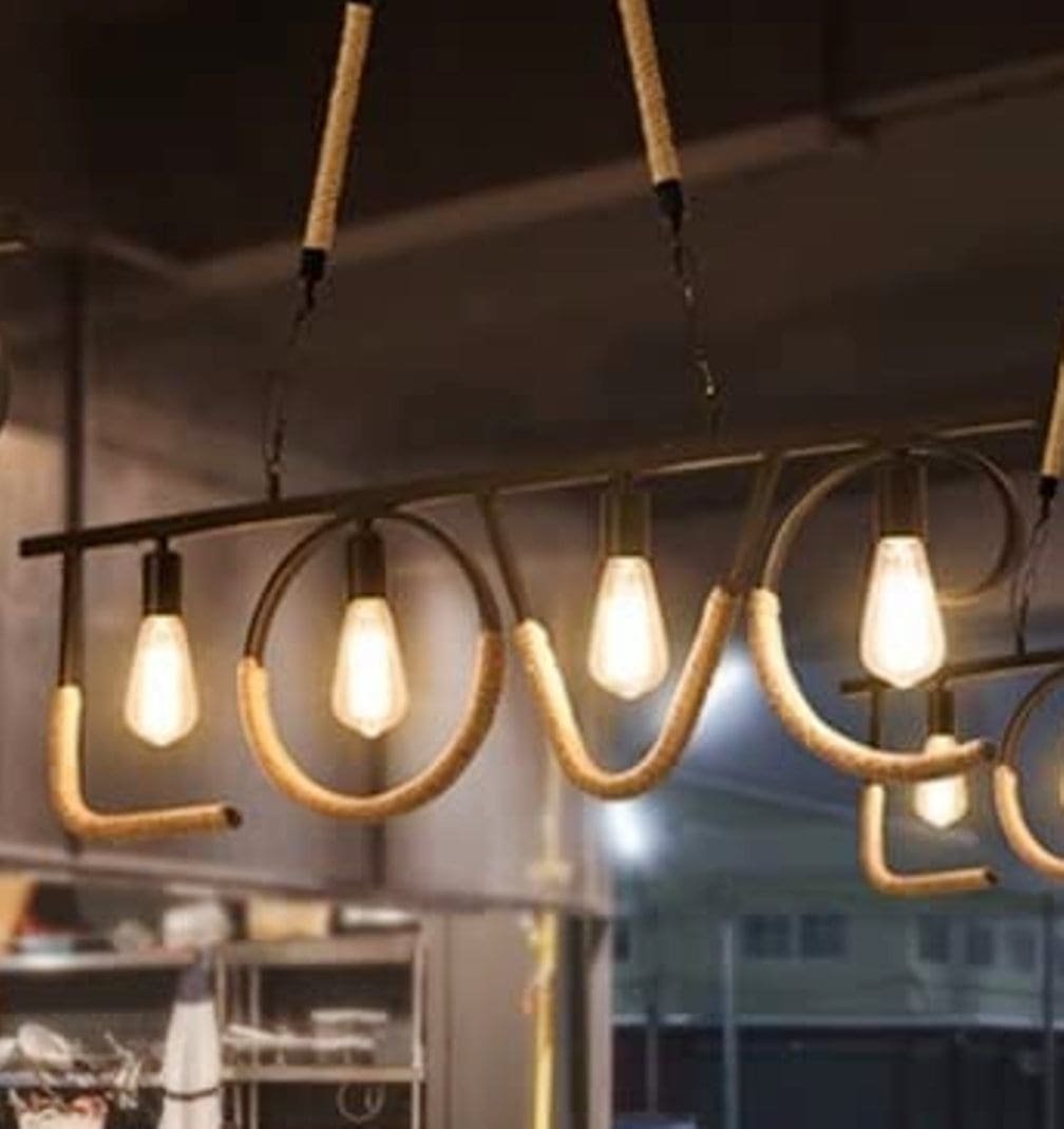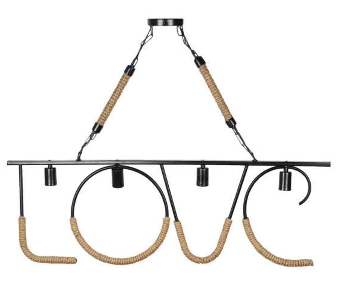 New Wrought Iron Made Love Design With Jute Rope Pendant Chandelier For Cafe, Bar And Restaurant