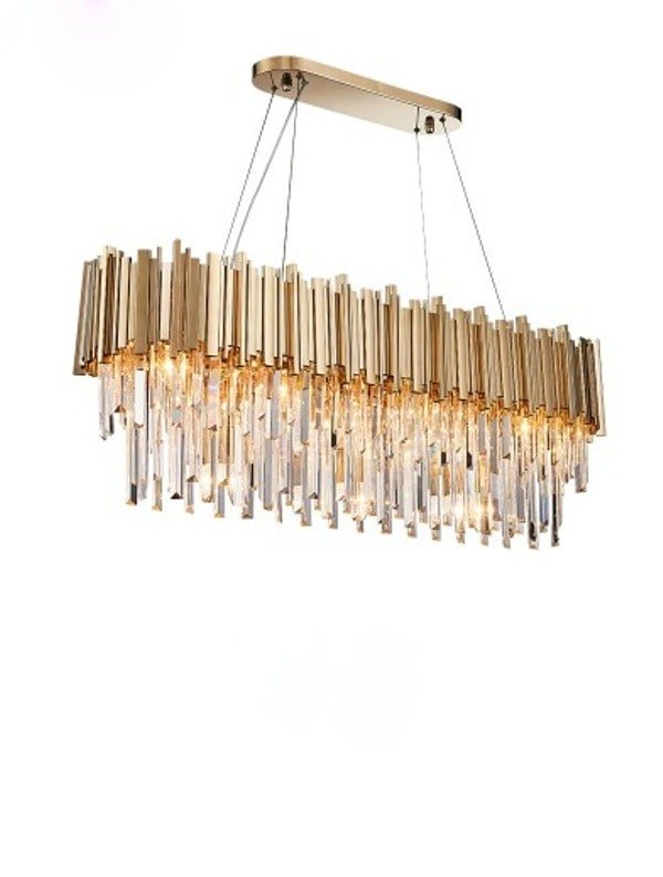 Oval Shape Golden Finish Crystal Design Height Suspension Chandelier