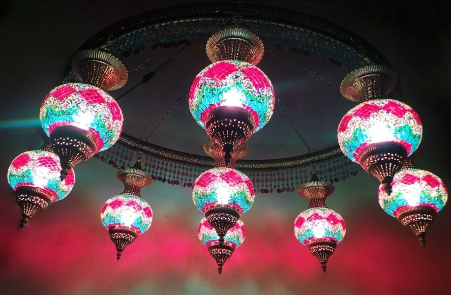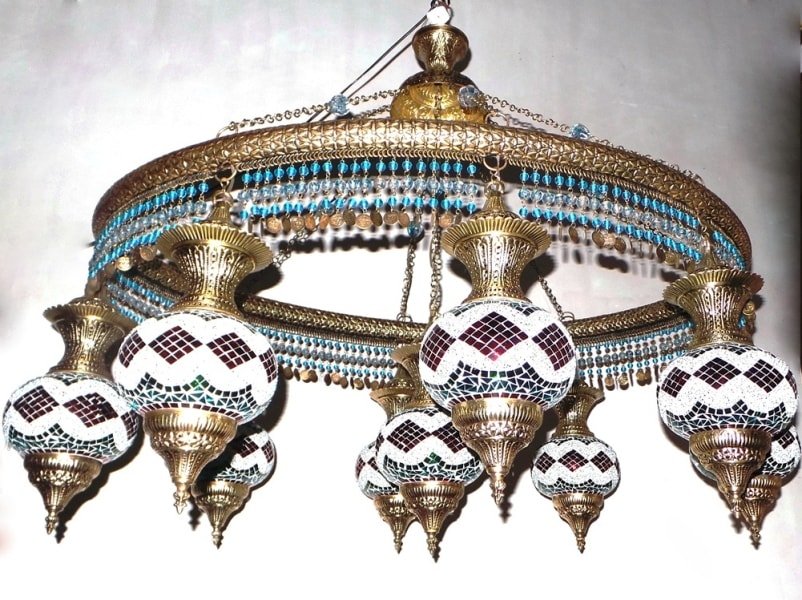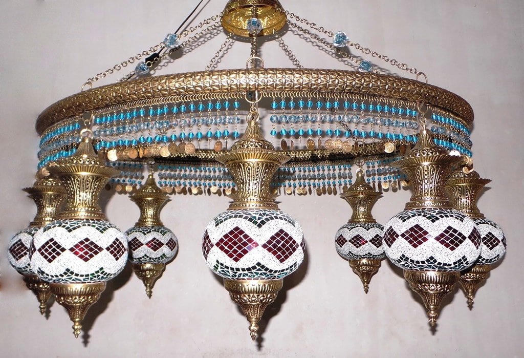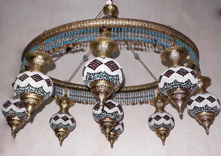 Oval Shape Ring With 9 Lamp Turkish Mosaic Chandelier