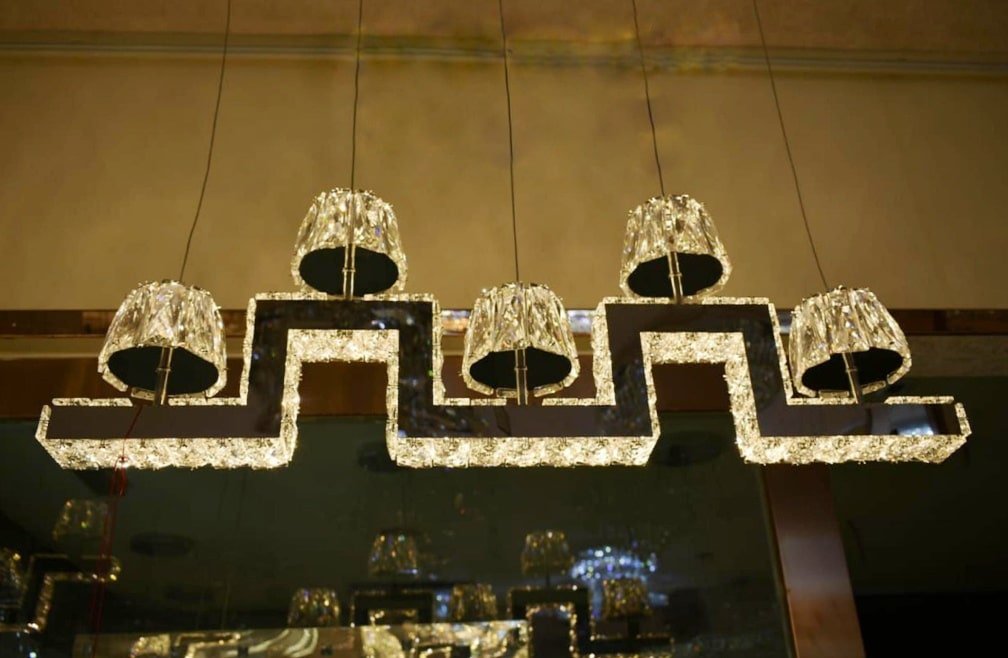 Rectangular Shape And Crystal Design Height Suspension Ceiling Pendant Chandelier For Dining Room And Bedroom