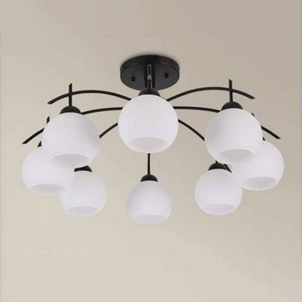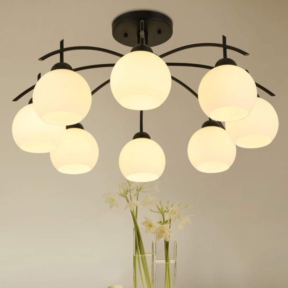 Retro Ceiling Lamp Black Industrial Chandelier With White Glass Shade Decorated 8 Lights