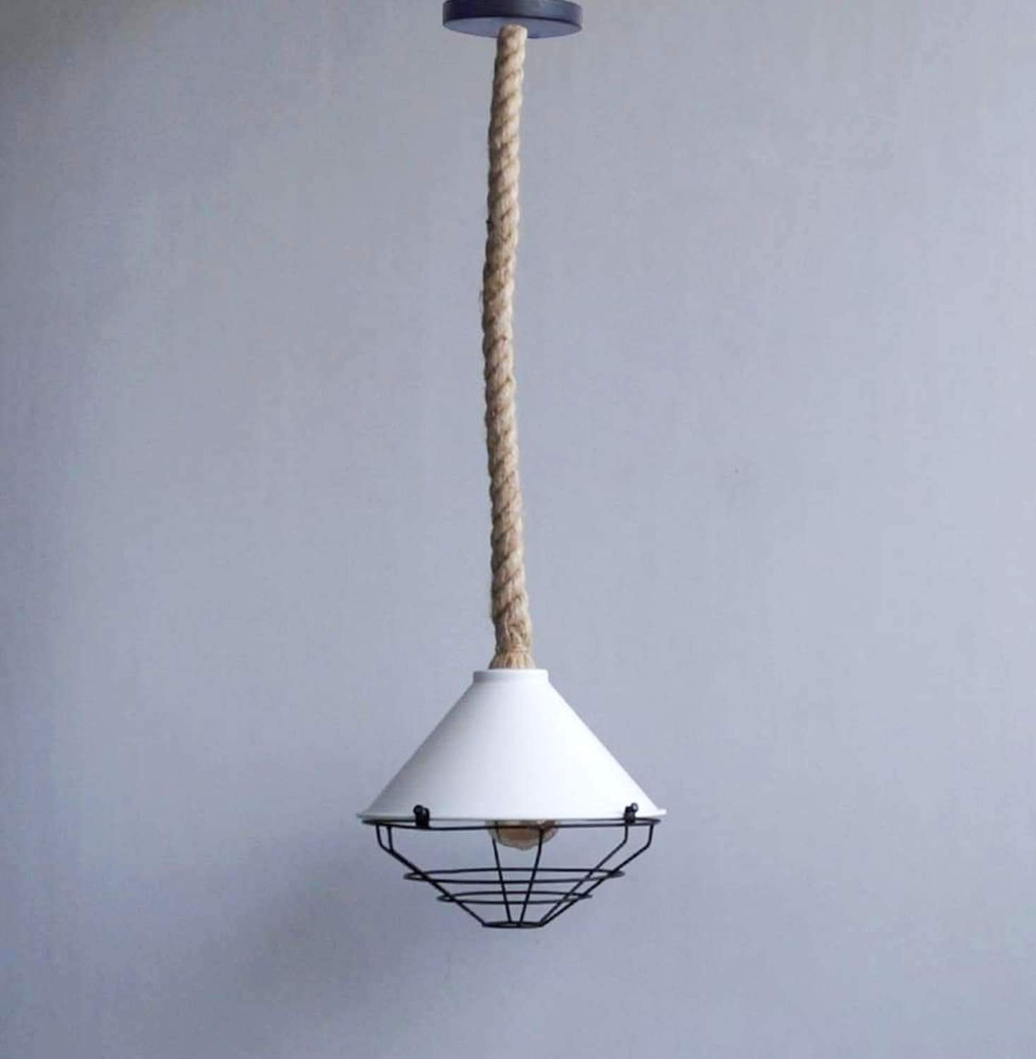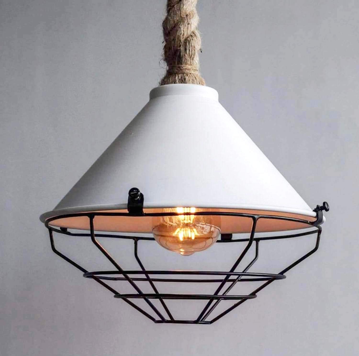 This metal cage and rope pendant light add a industrial feel to any room and cafe house.