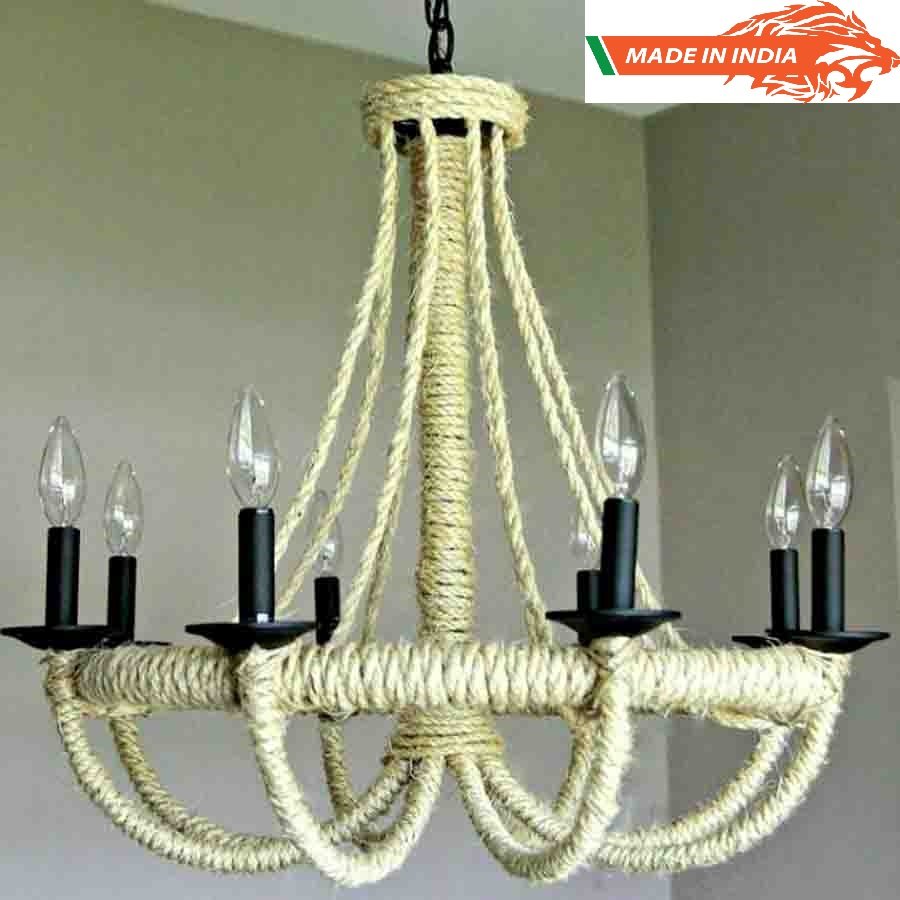 This modern hanging chandelier features paltry 'chili bulb' fixtures mounted around the wheel,jute rope is the strongest lightly making the wheel,its useful for living room & also used a corner of the bedroom and drawing room and offering a contrast of delightful.