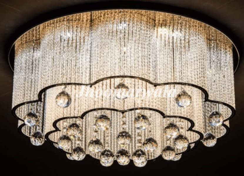 Presented has this unique crystal chandelier by Jhoomarwala.
