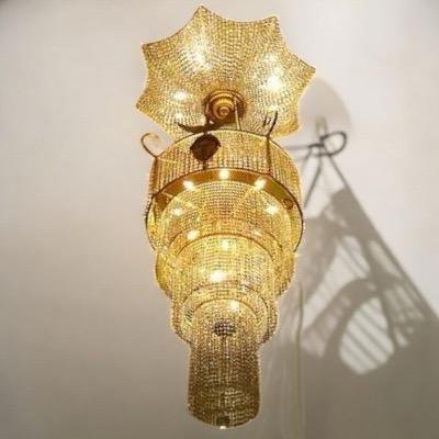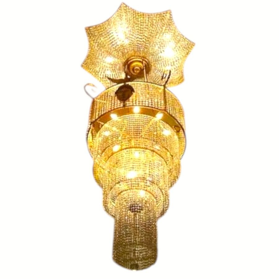 Featuring a glittering gold finish with cascading crystal beads, this chandelier illuminates any room with opulence and sophistication. Ideal for living rooms, banquet halls, hotels, and luxury homes, it reflects perfection in every detail.
