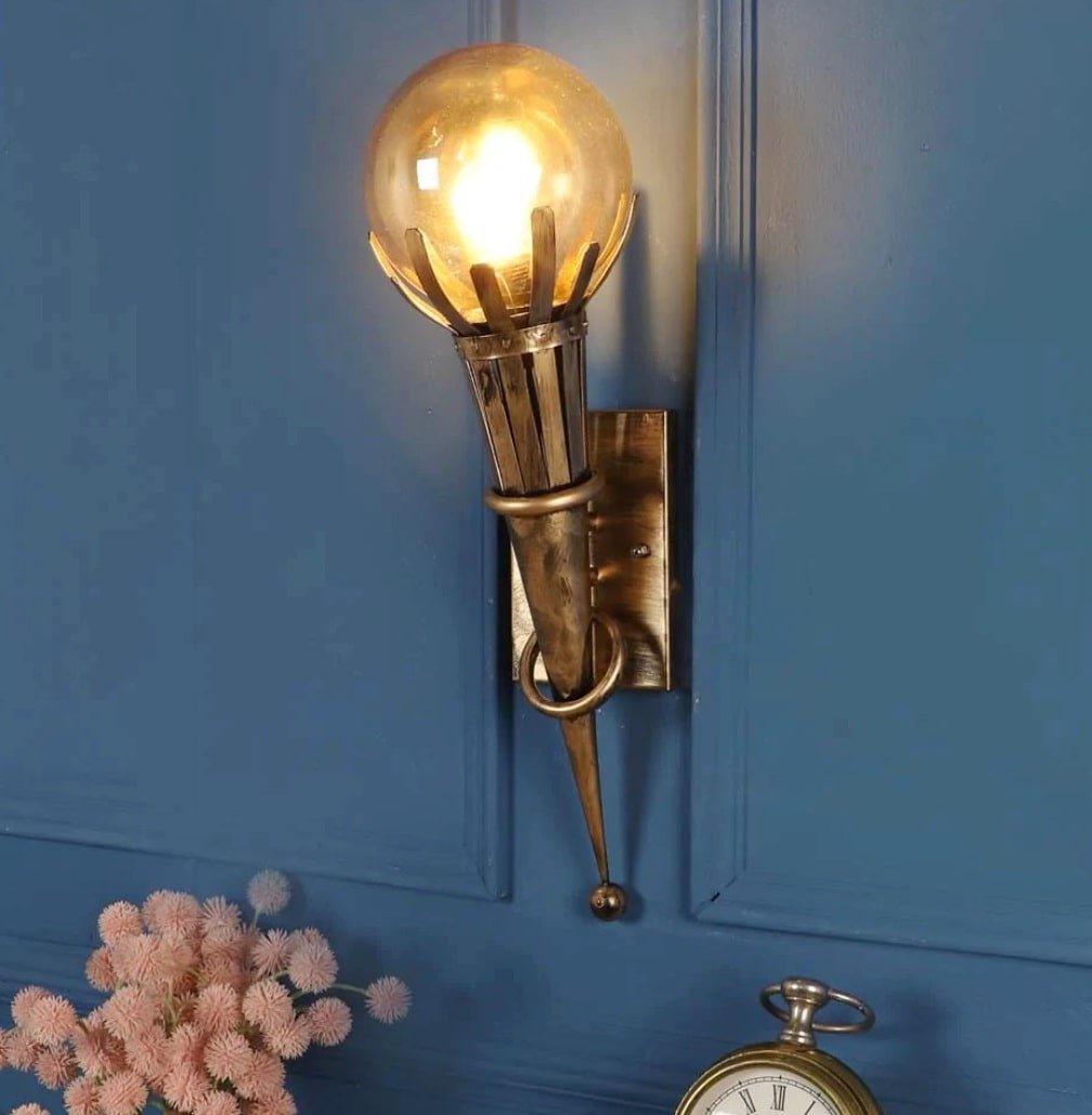 Rustic Antique Finish Cone Shape Design Wall Mount Light For Home, Villa And Cafe