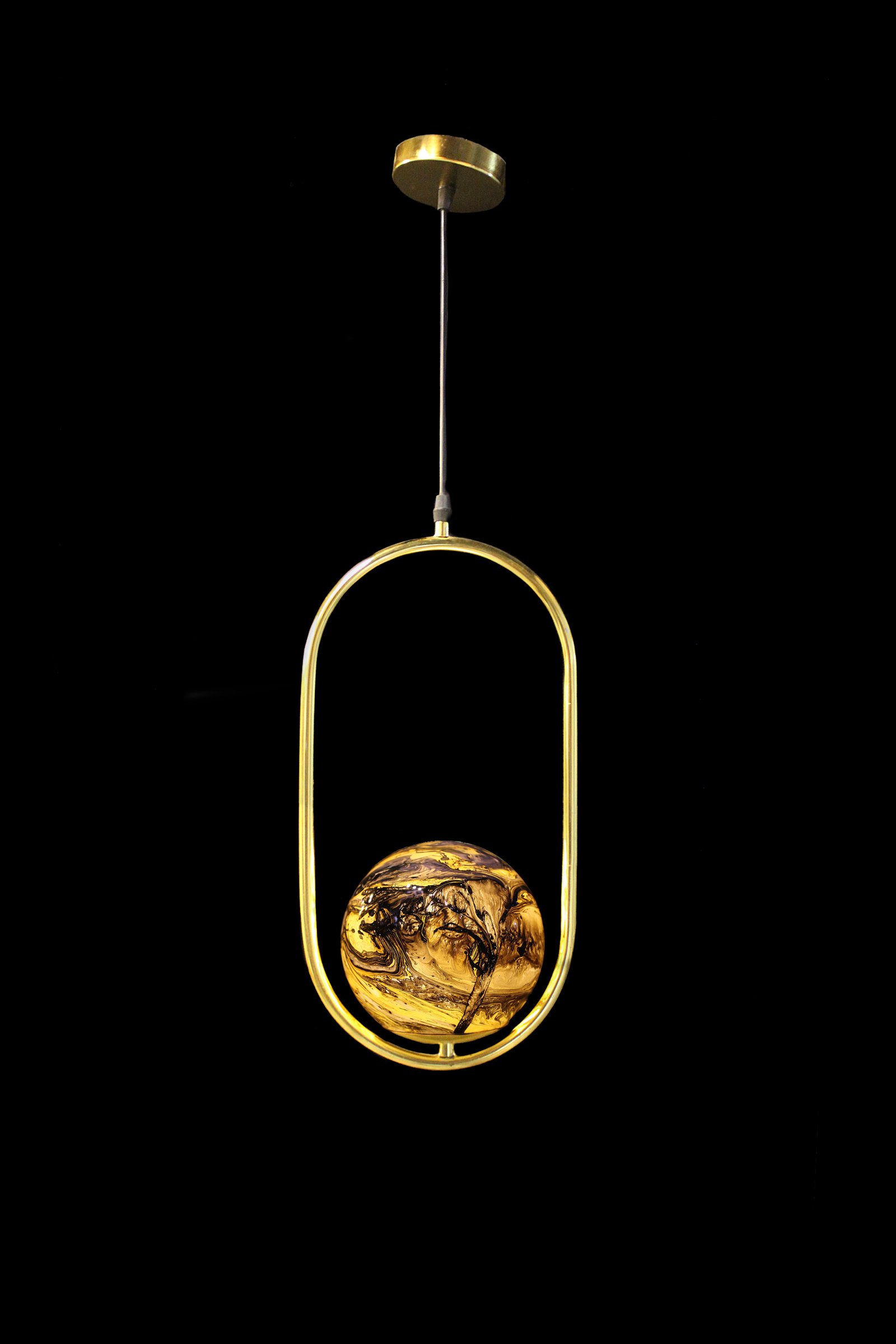 The one only sphere shape acrylic painted ball hanging with gold finish rod.