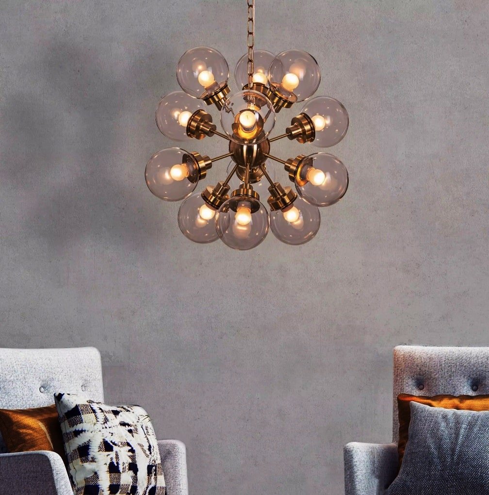 Sputnik Design Amber Glass Finish Brunching Bunch Design Pendant Chandelier For Living Room