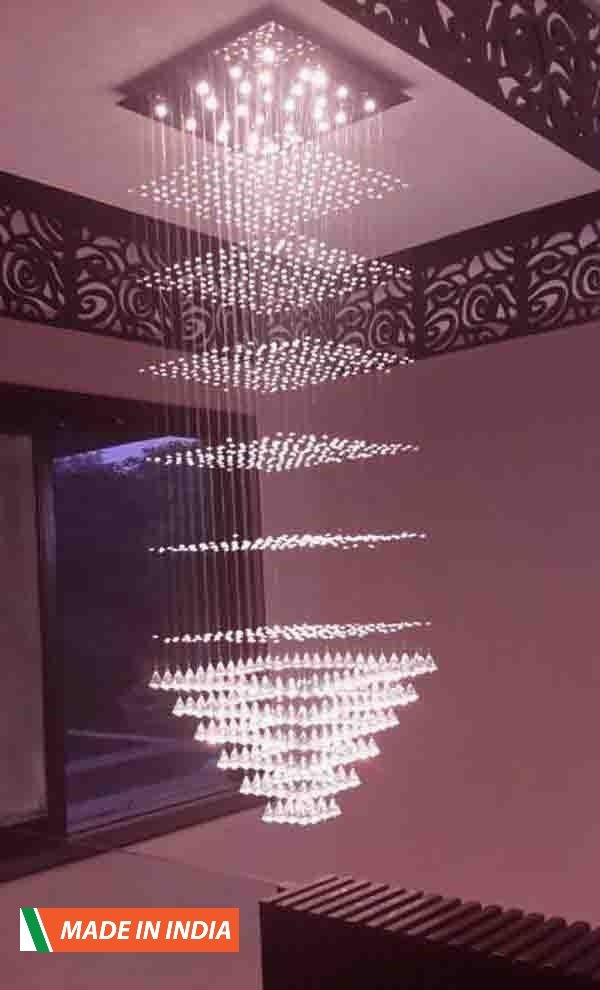 Square Shape Big Size Crystal Hanging Indian Chandelier