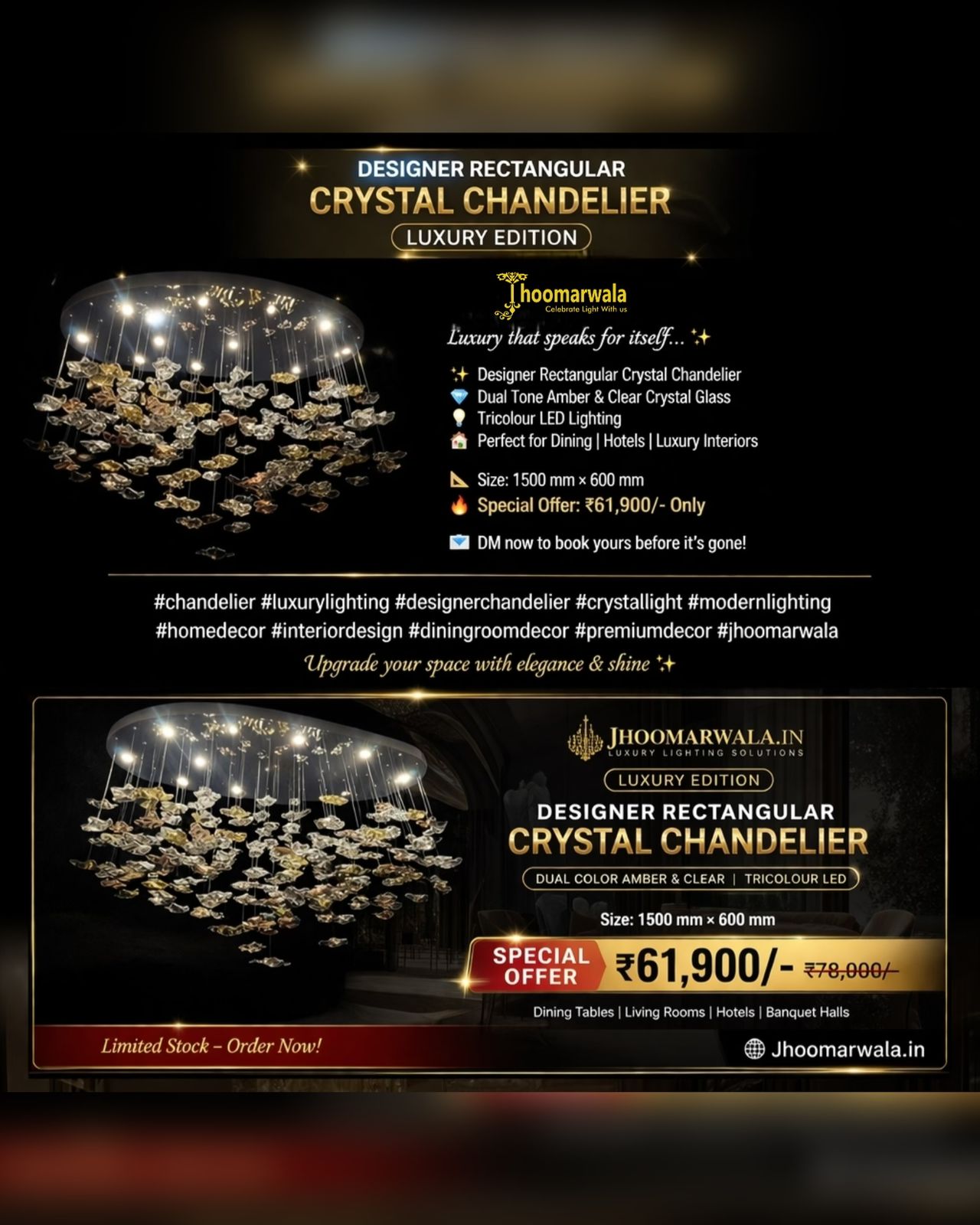 The color palette is a sophisticated mix of Amber and Clear crystals, providing a rich depth even when the lights are off. Equipped with Tri-color LED technology, you can easily switch between Warm White, Natural White, and Cool White to match your mood or the time of day. Its elongated 1500mm profile makes it the perfect choice for dining tables, kitchen islands, or grand hallways.