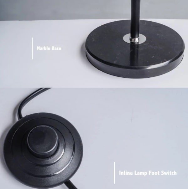 Stylish Tall Standing Lamp With Black Marble Base And Foot Switch