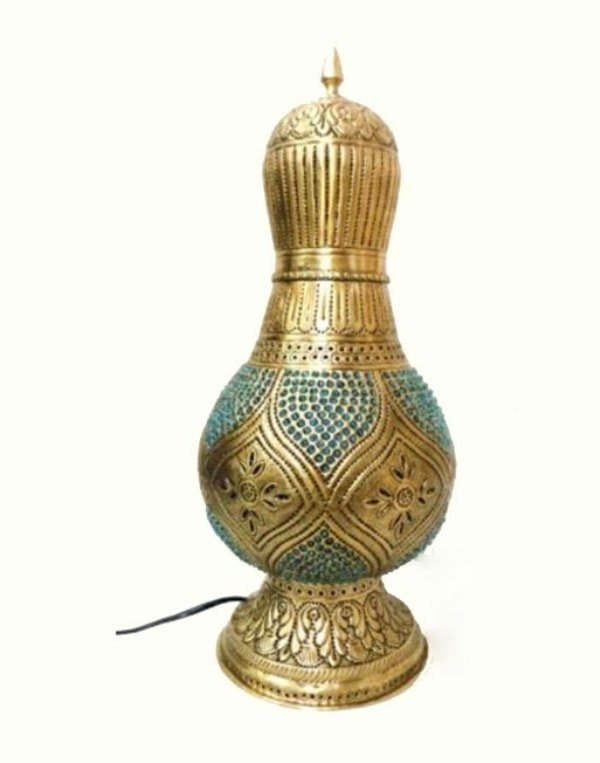 Textured Antique Brass Moroccan Style Blue Table Lamp And Bedside Lamp
