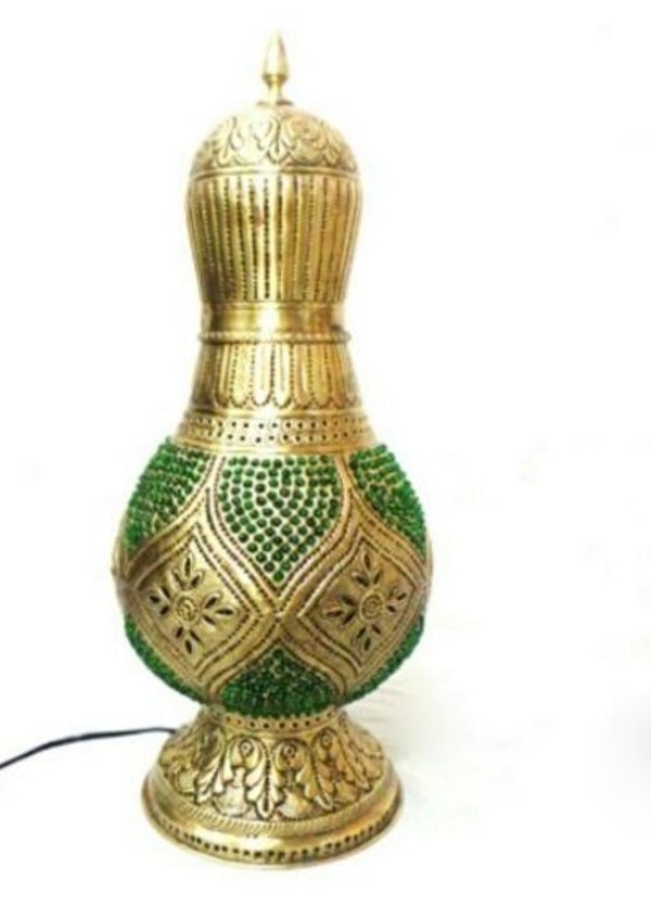 Textured Antique Brass Moroccan Style Green Table Lamp And Bedside Lamp