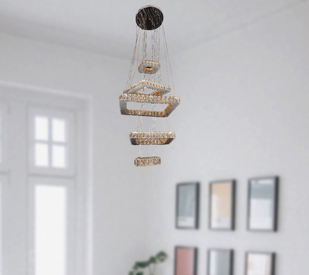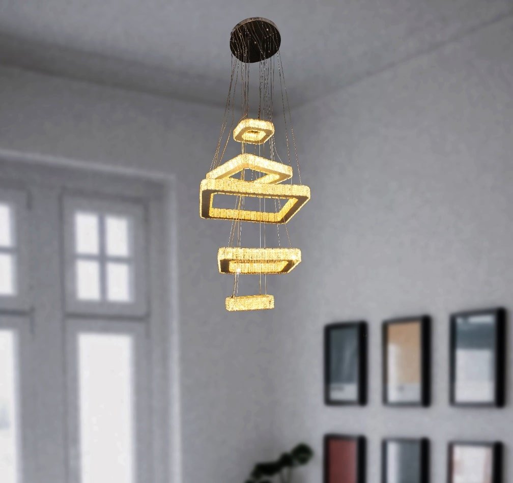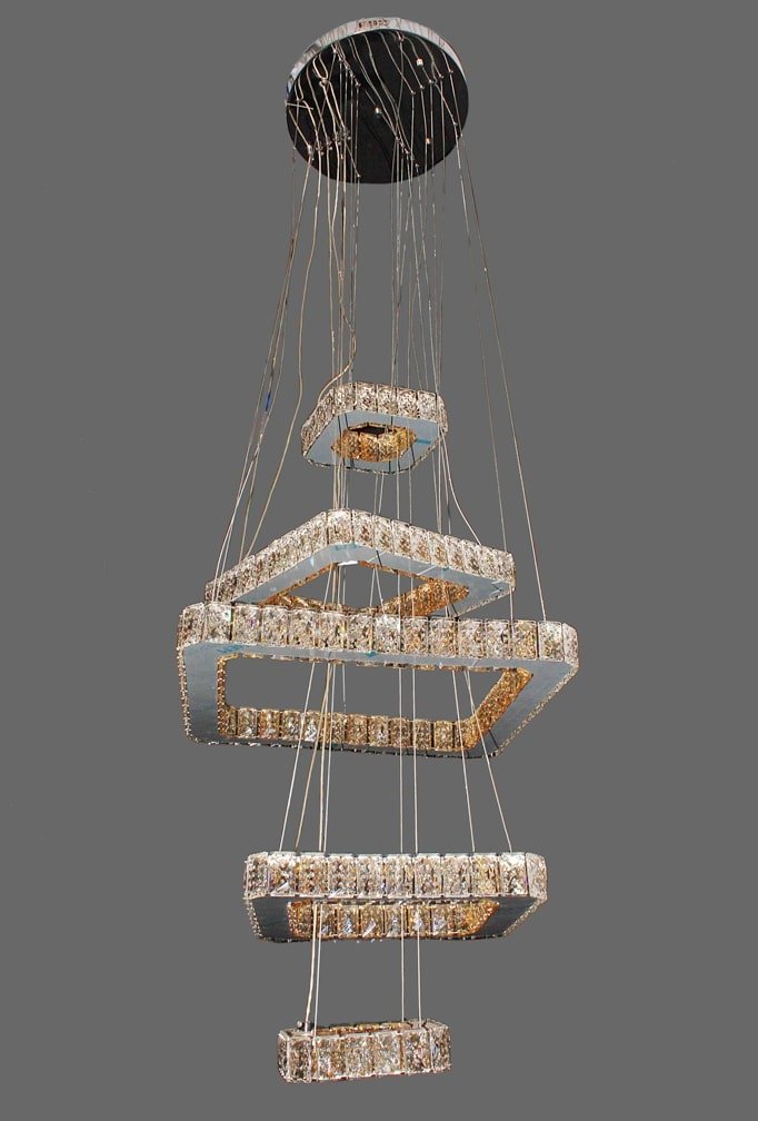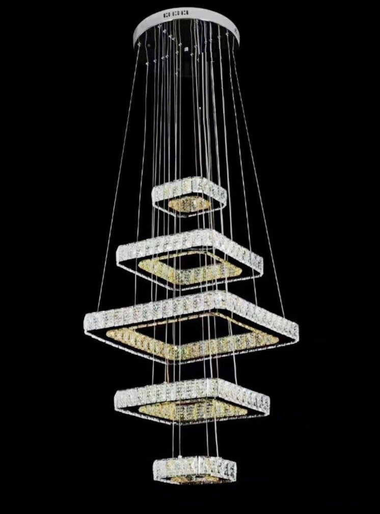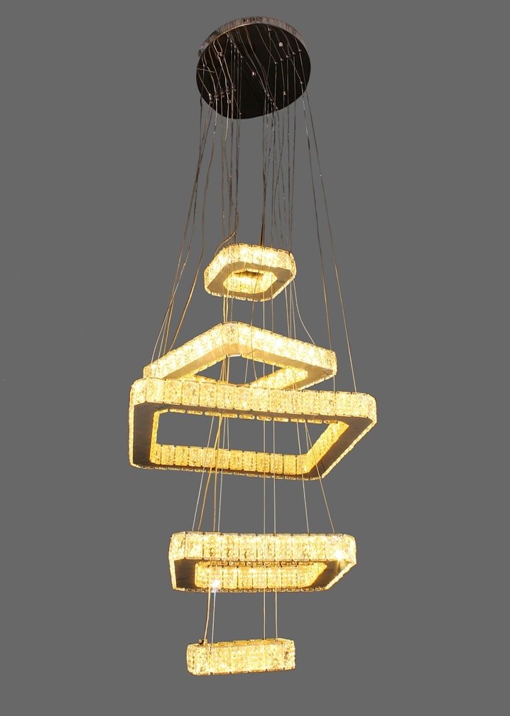The 5 Square Shape Crystal Decor Pendant Light Chandelier With Three Colors Changing Led Light