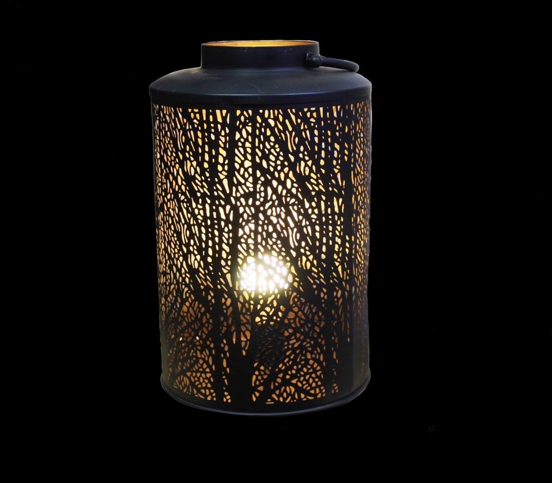 The Baked Shape Art Tree Design Metal Cutting Double Color Table Lamp