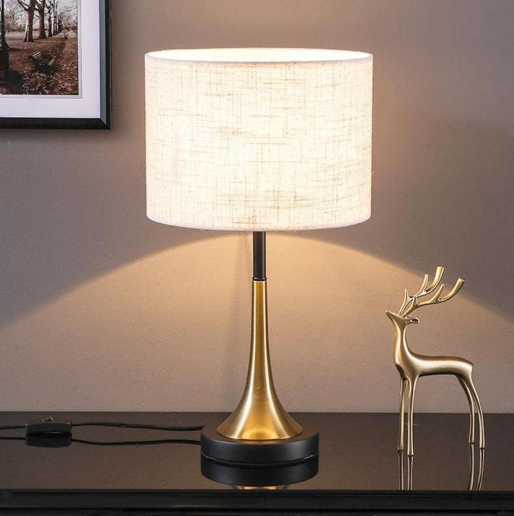 The Black And Antique Gold Finish With Fabric Shade Bedside Desk Lamp For Your Home And Office And Hotel