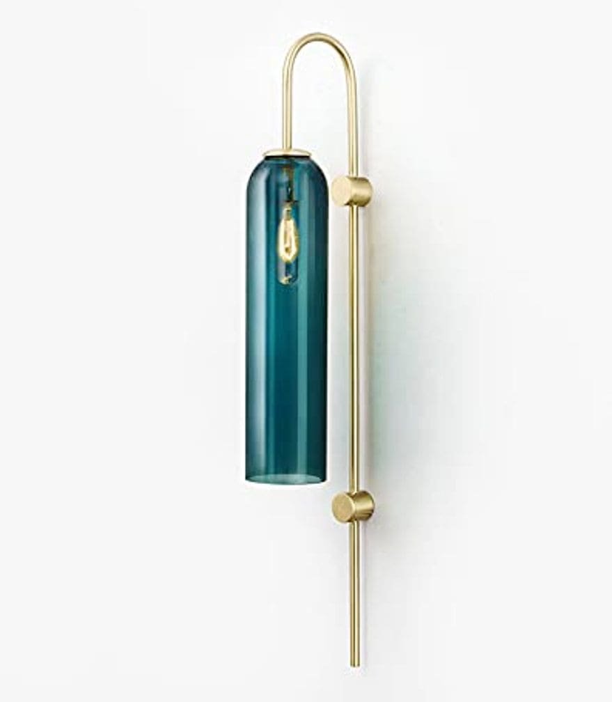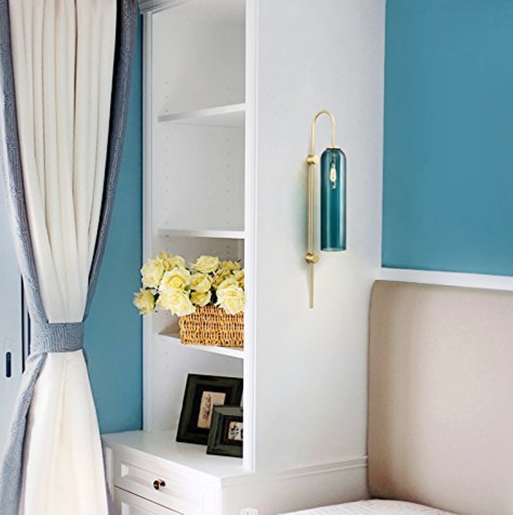 The Blue Color Long Glass Lamp With Gold Finish Stand Body Wall Decor Lamp For Bedroom And Living Room