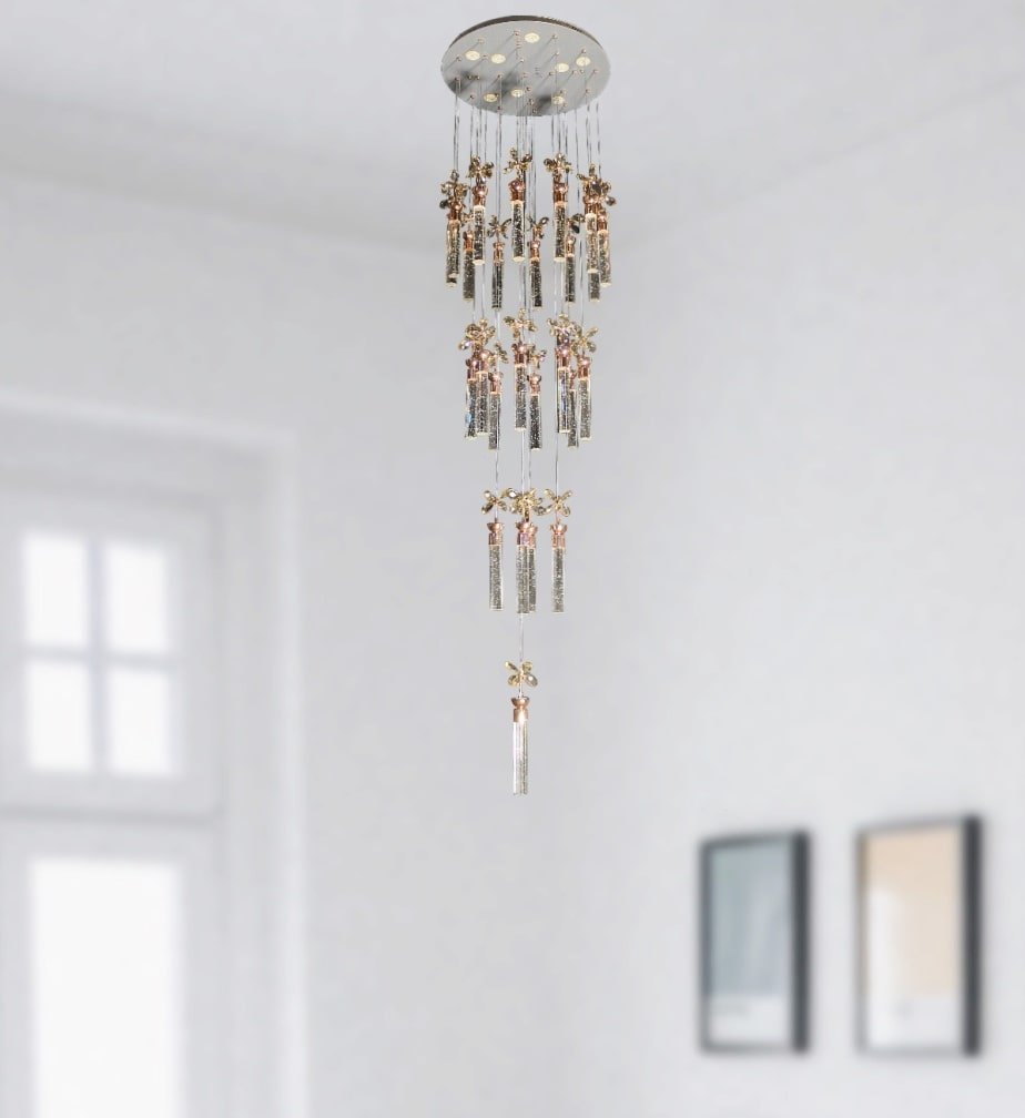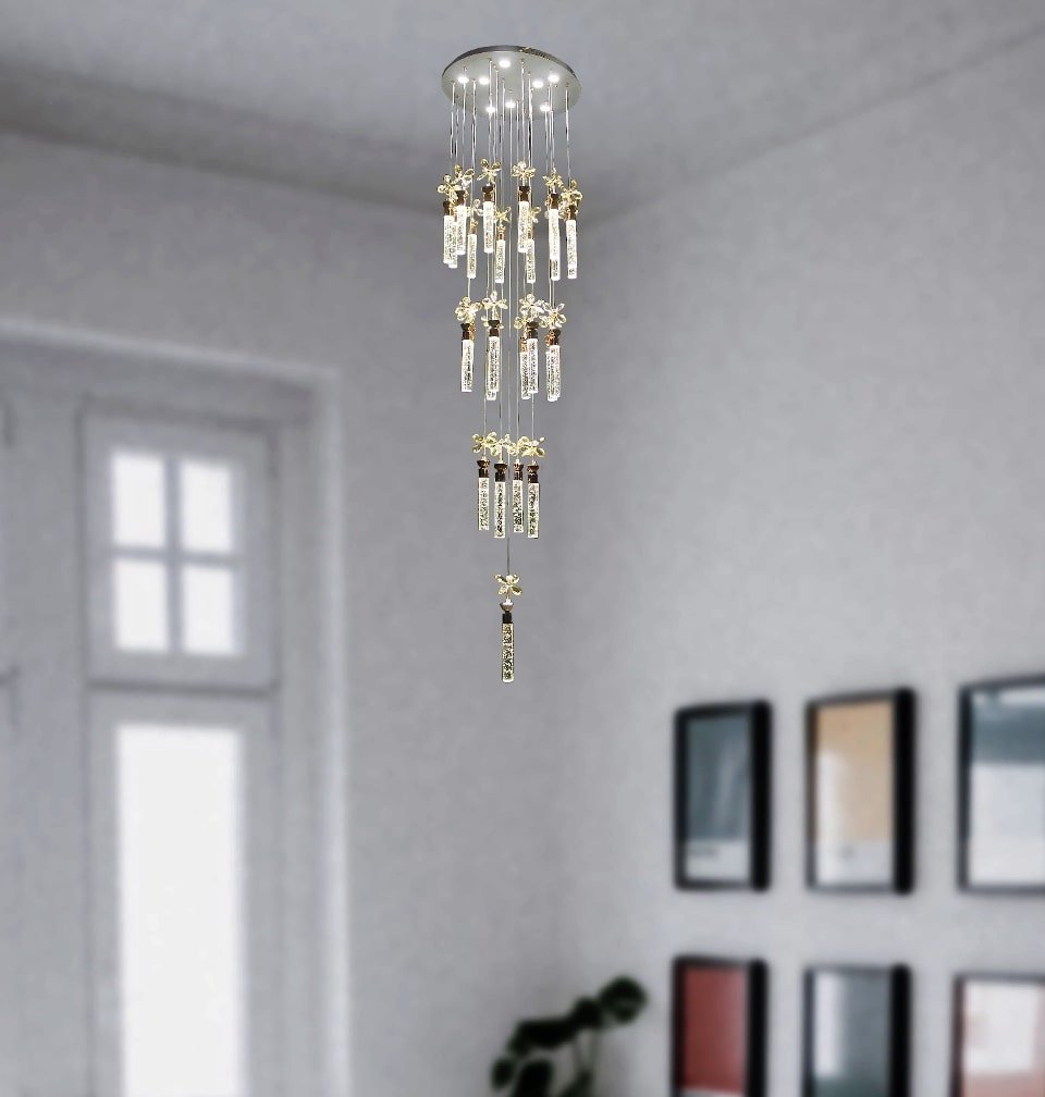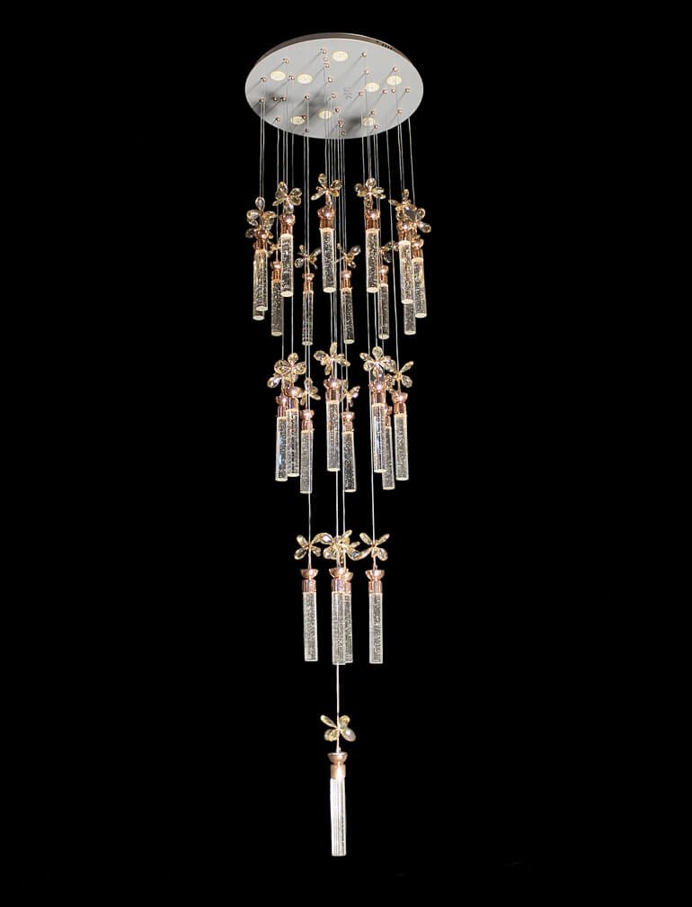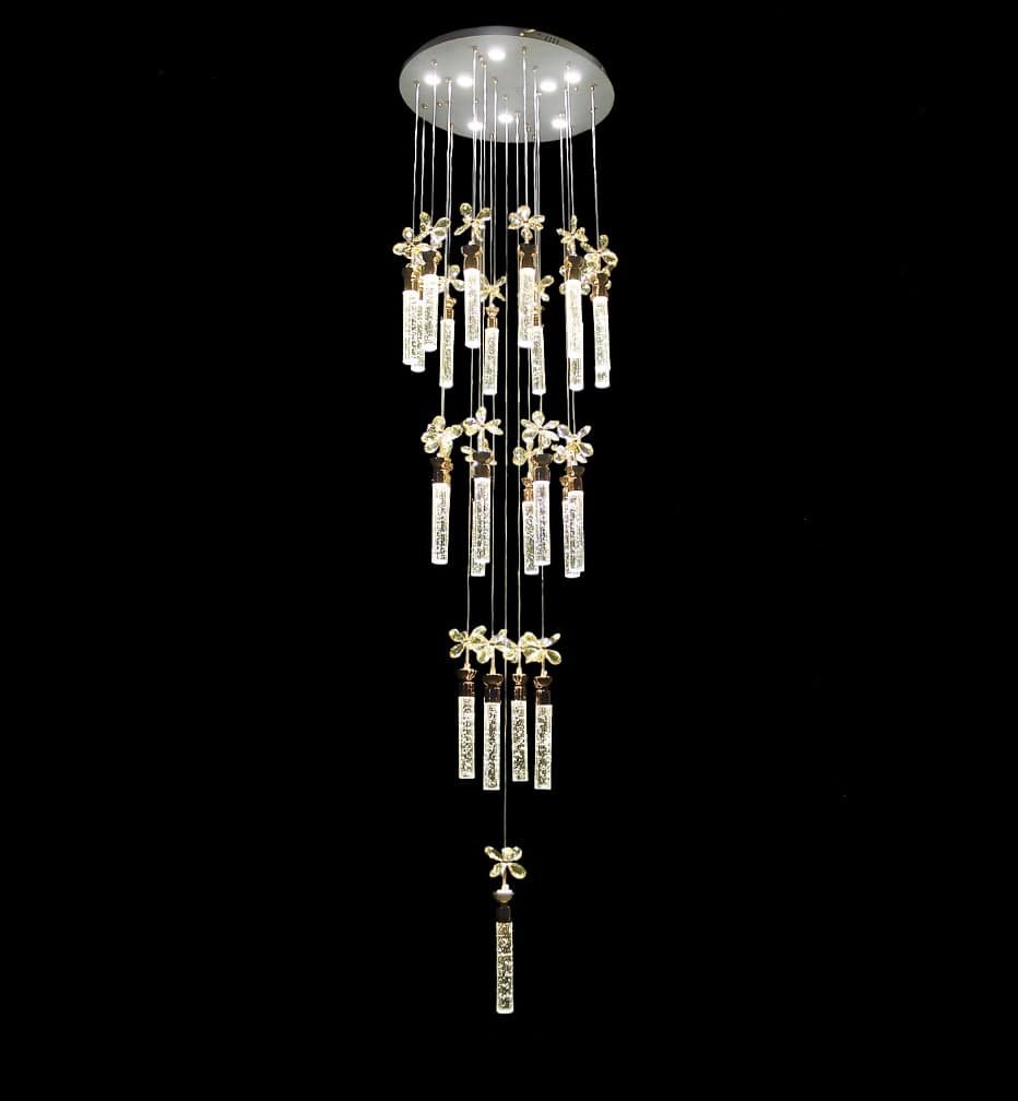 The Crystal Flower Design And Gel Glass Rod Pendant Chandelier For Double Heighted Ceiling And Stair Case