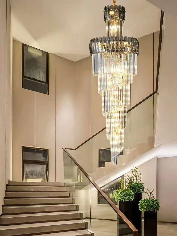 This is the stair case big size crystal made golden chandelier.