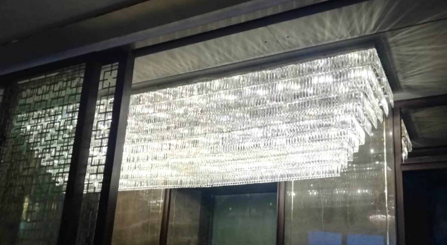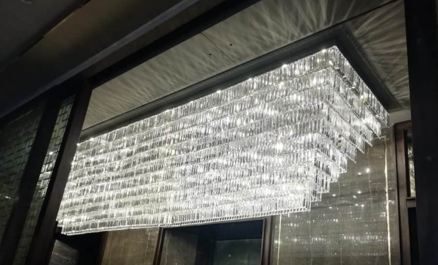 The Customize Big Size Rectangle Shape Golden Finish Metal Crystal Decorative Flush Mount Chandelier For Villa And Hotels