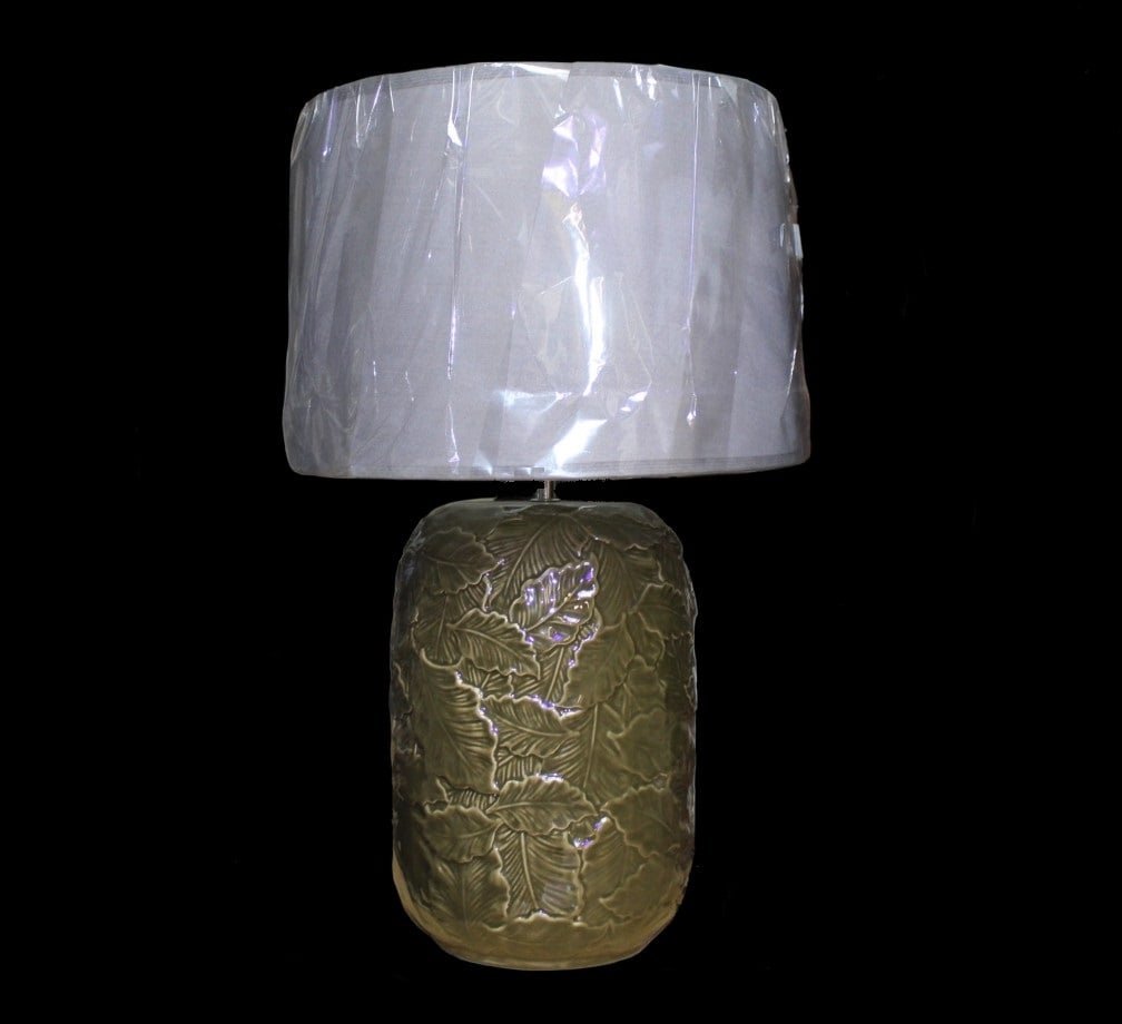 It's a light and bright sight, with some stylish intrigue. This table lamp is the perfect modern accessory for a bedroom, study room or living space. Base is made of ceramic.