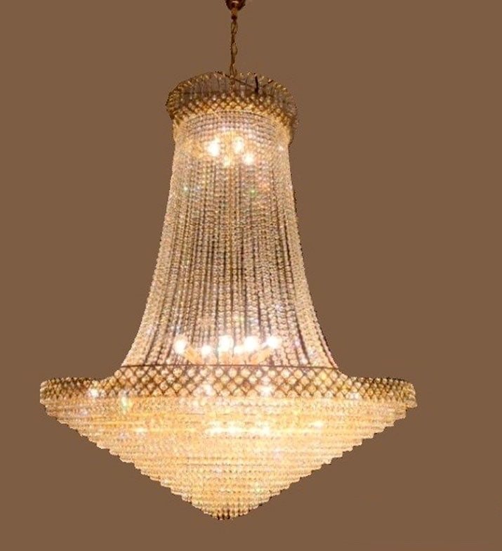The Golden Finish Metal Body And Crystal Pendant Design Chandelier For Hotel, Home &temple