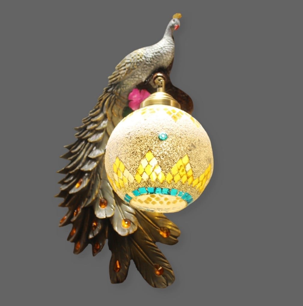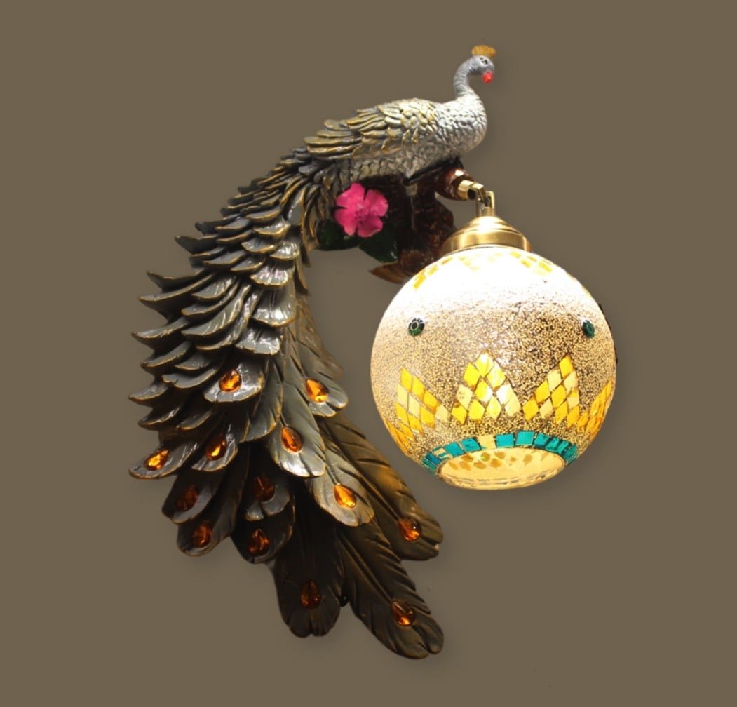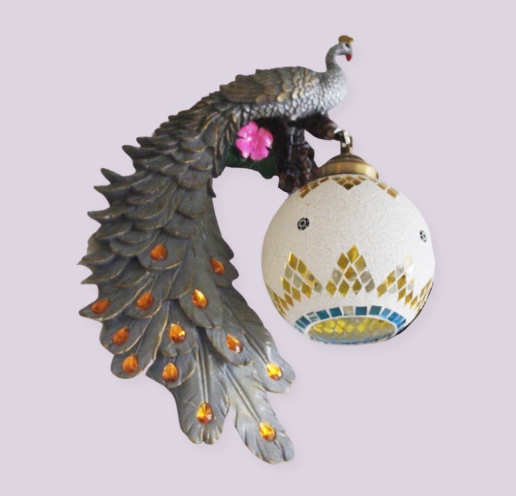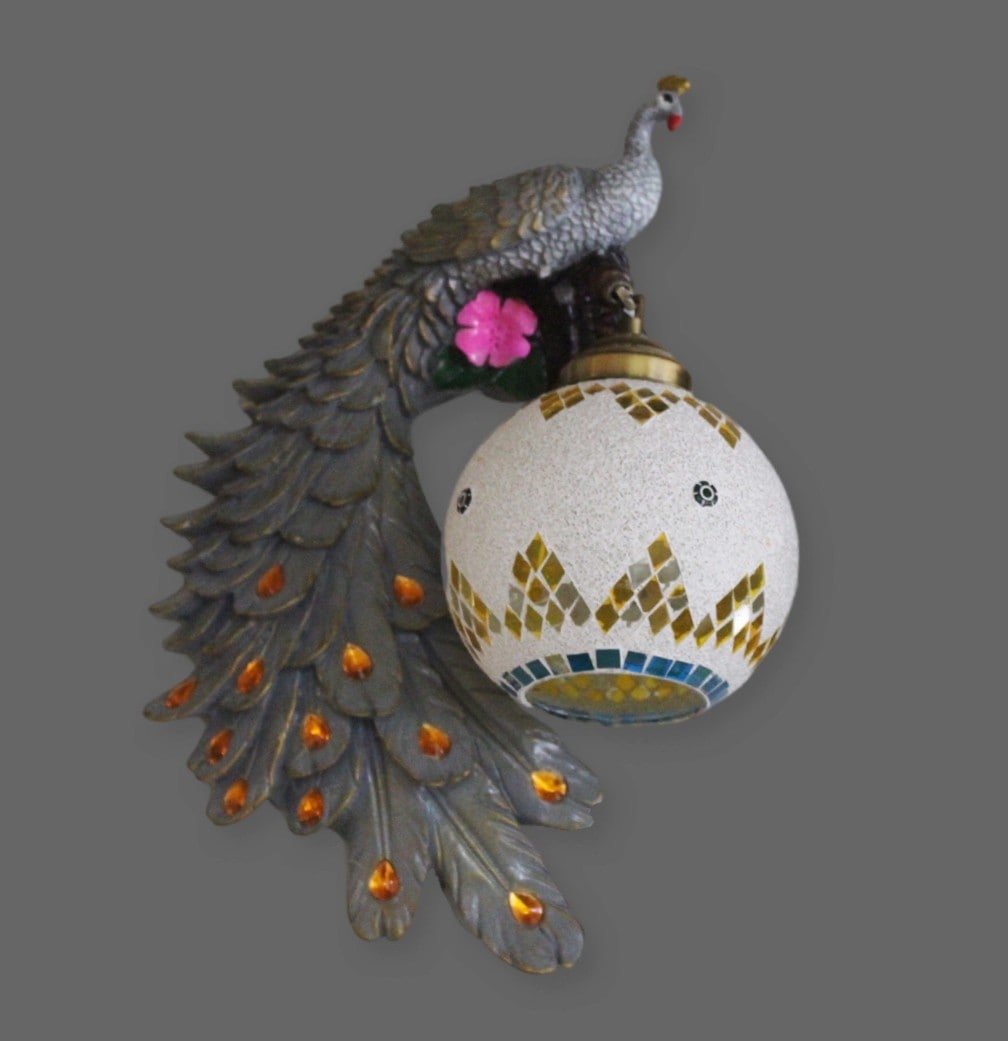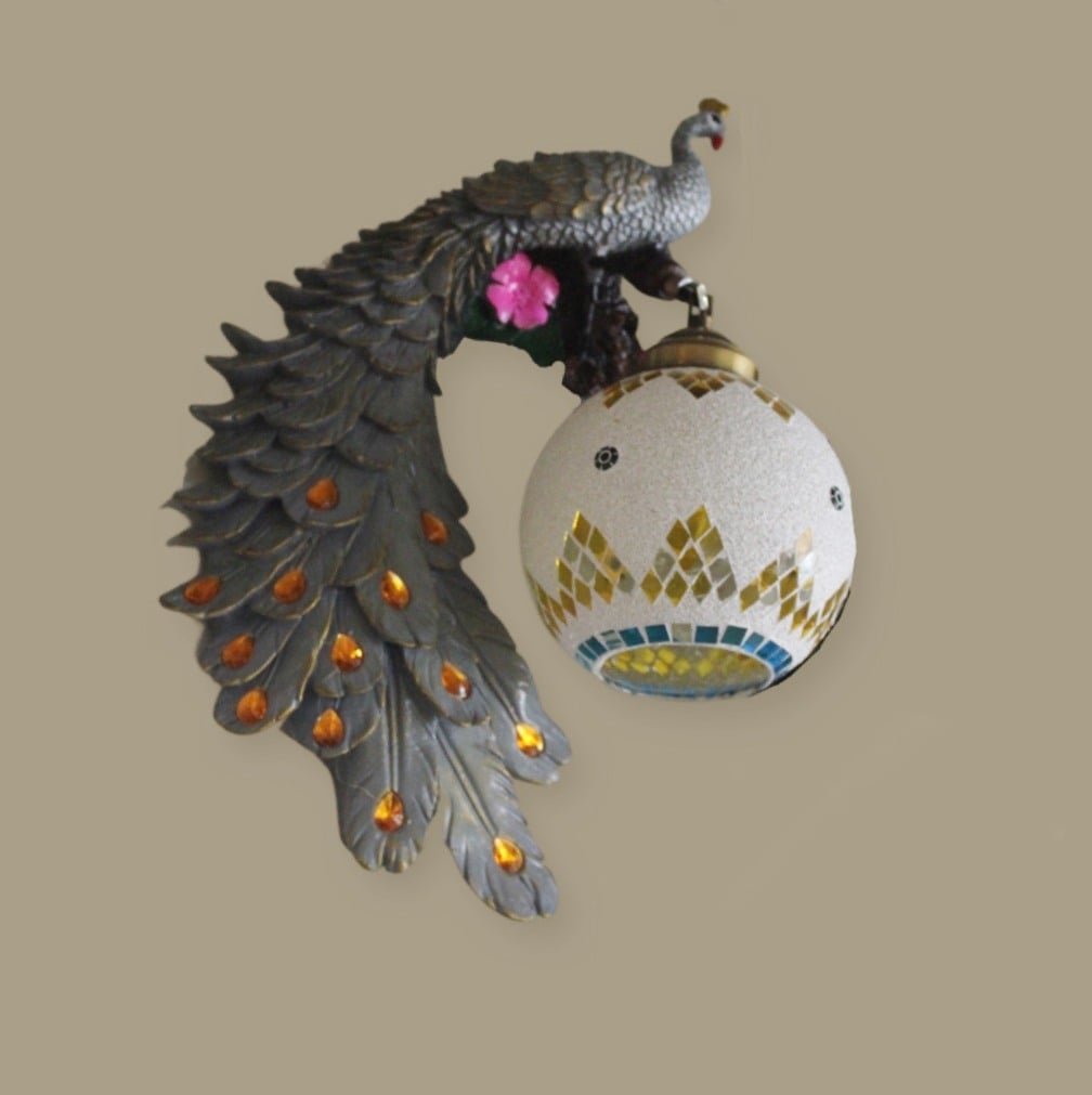The Grey Finish Artificial Peacock Design Wall Mount Lamp