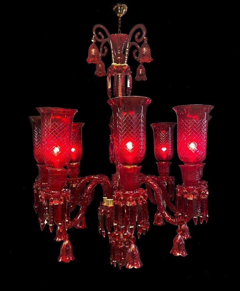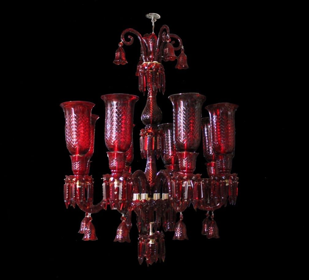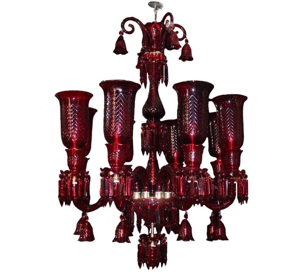 The Jhoomarwala Customize Indian Design Red Color Glass And Crystal Antique Style Chandelier For Villa And Home