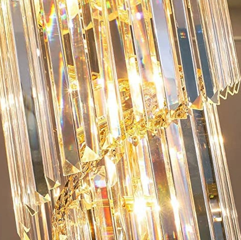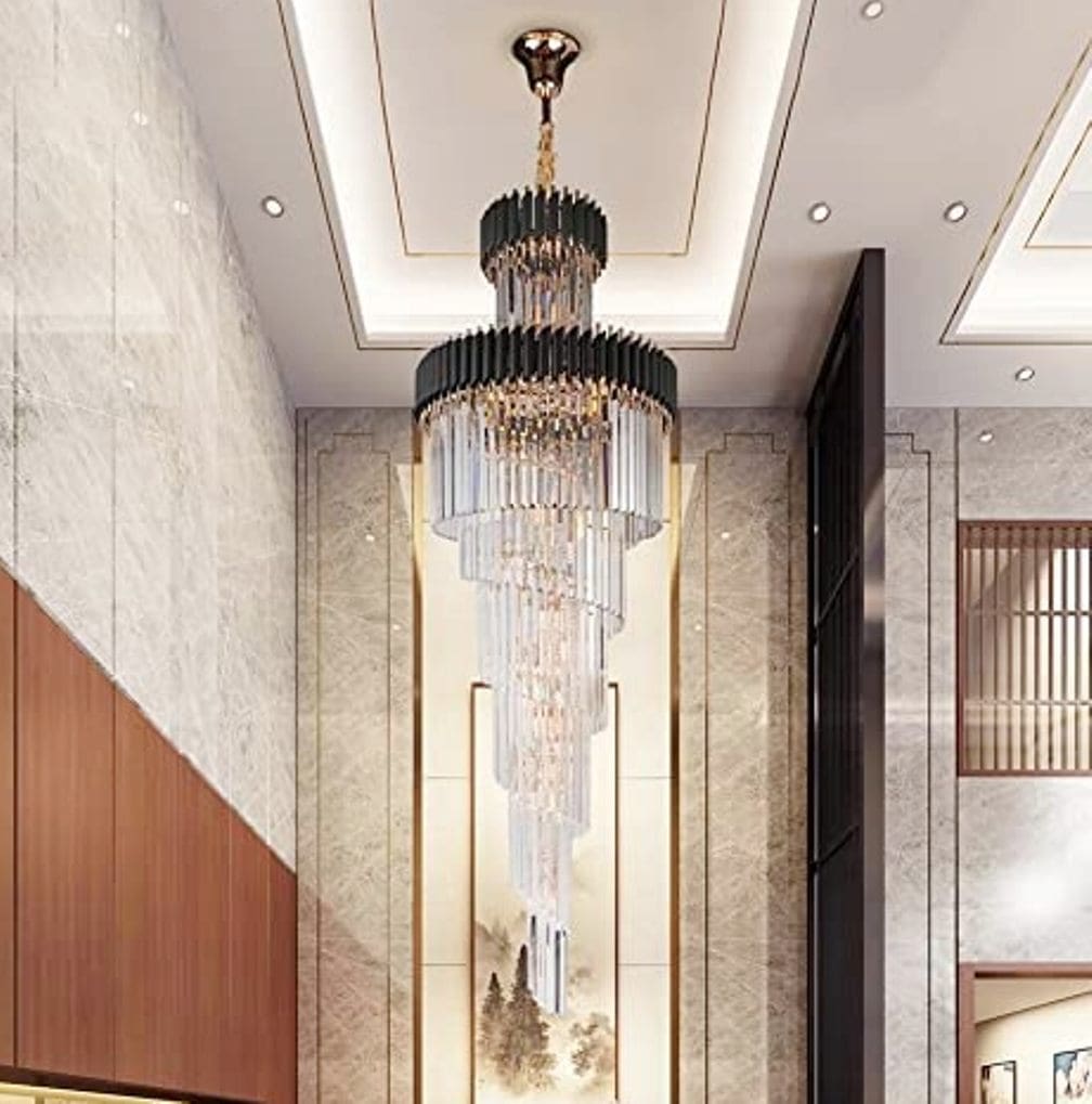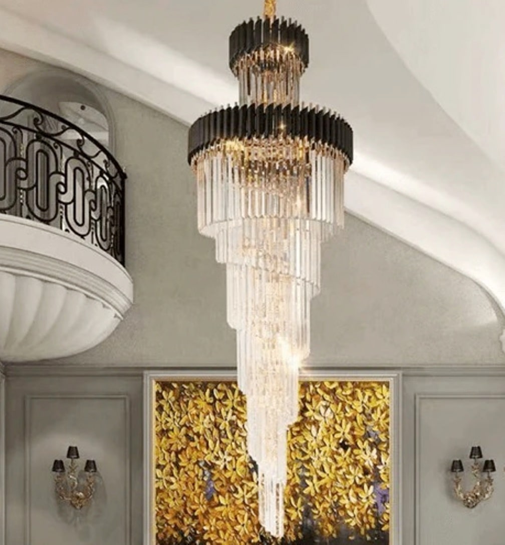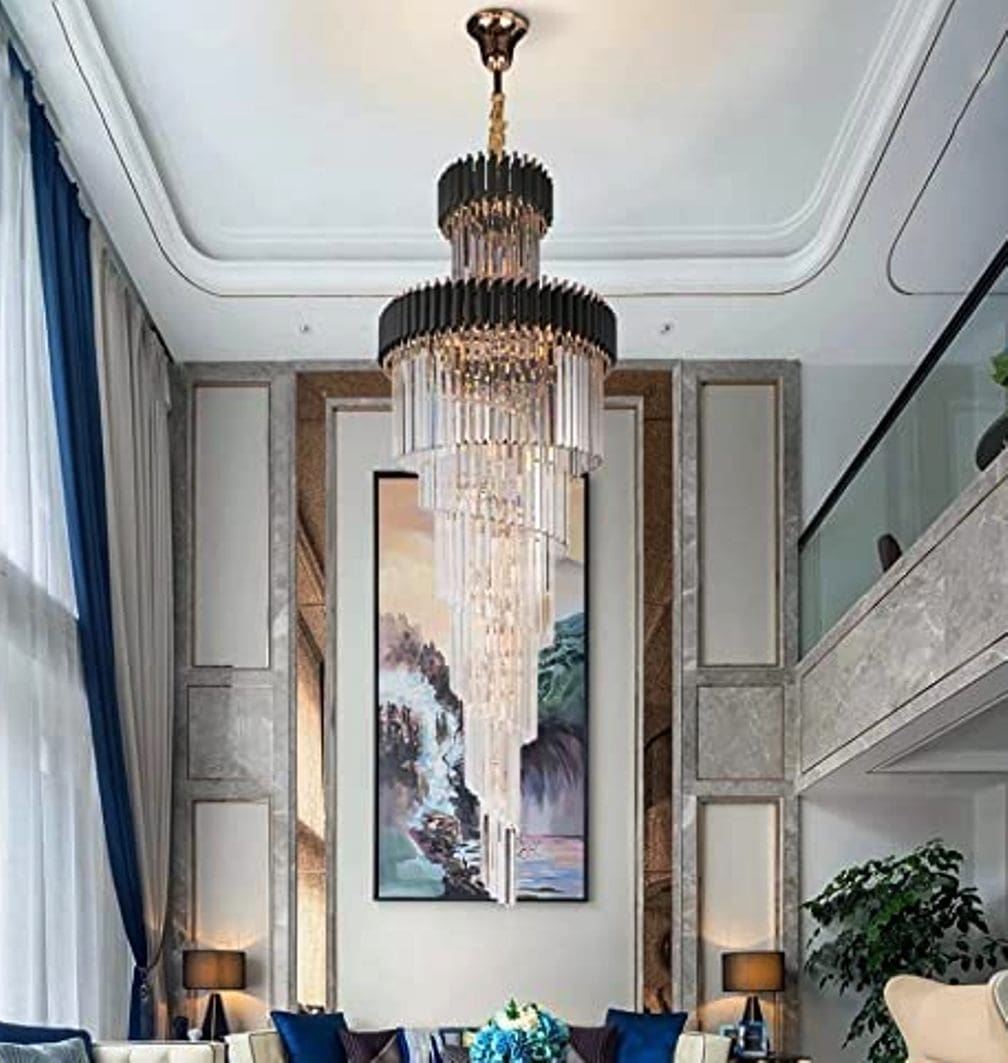 A very tall, exquisite crystal chandelier to provide height and beauty to many living spaces.