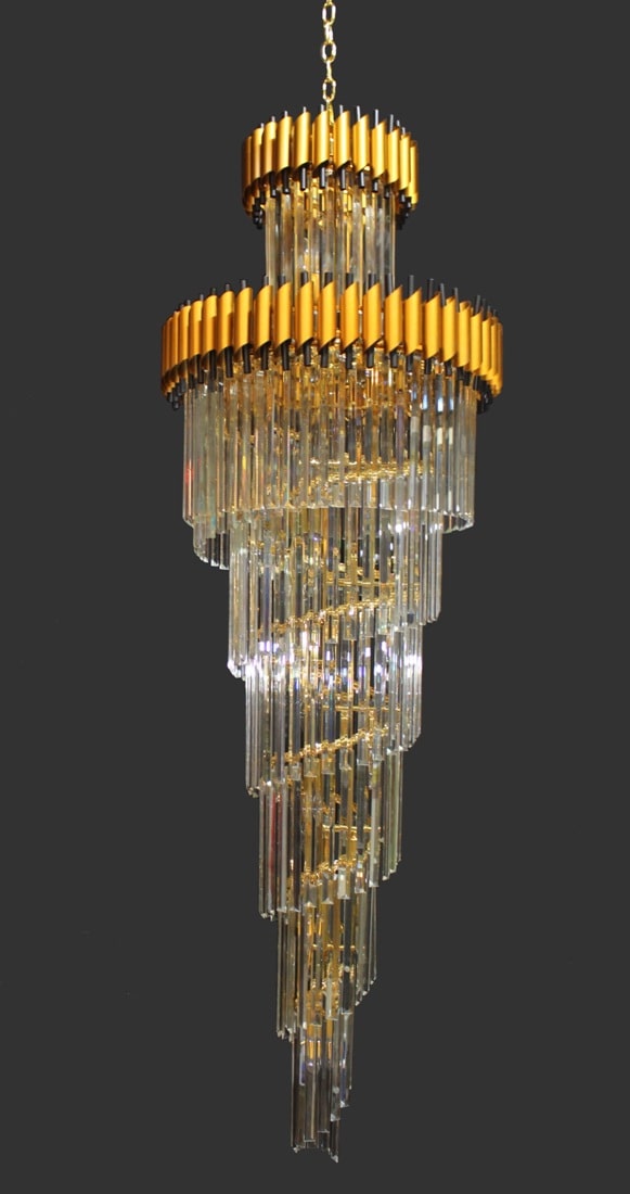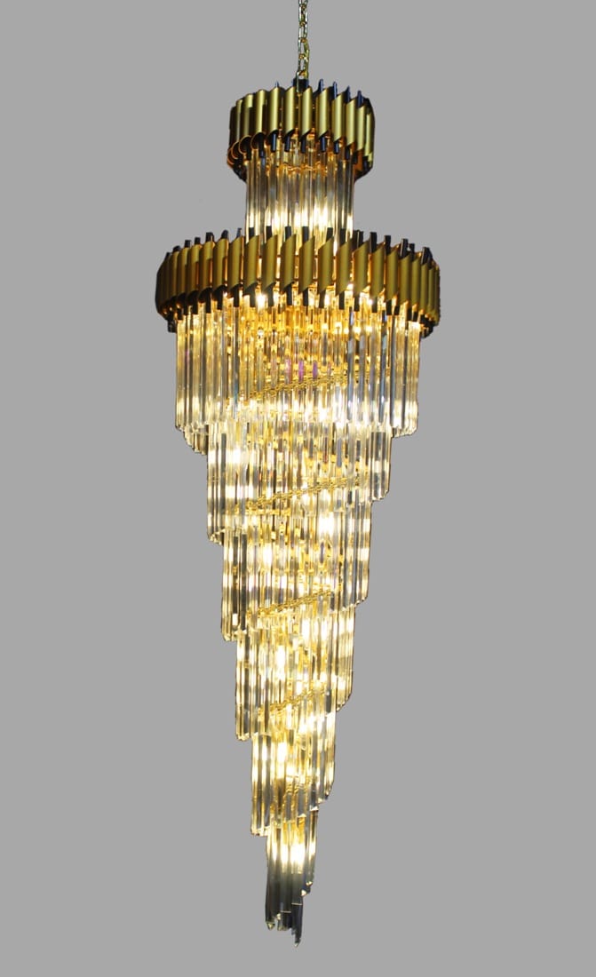 The Large Size Spiral Shape Golden Design Crystal Decorative Chandelier For Staircase And Double Height Ceiling