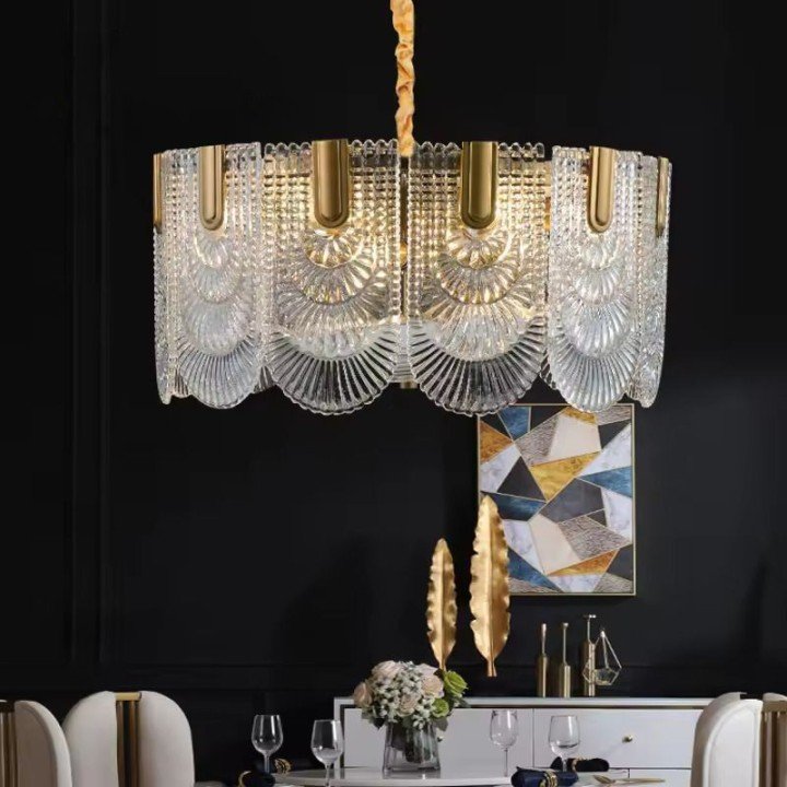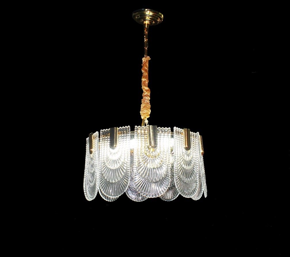 The Luxury Glass Decor With Golden Finish Metal Body Pendant Chandelier For Dining Area