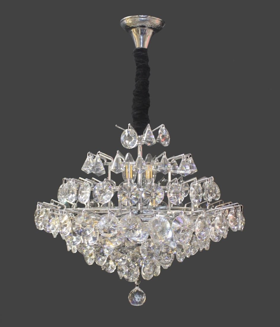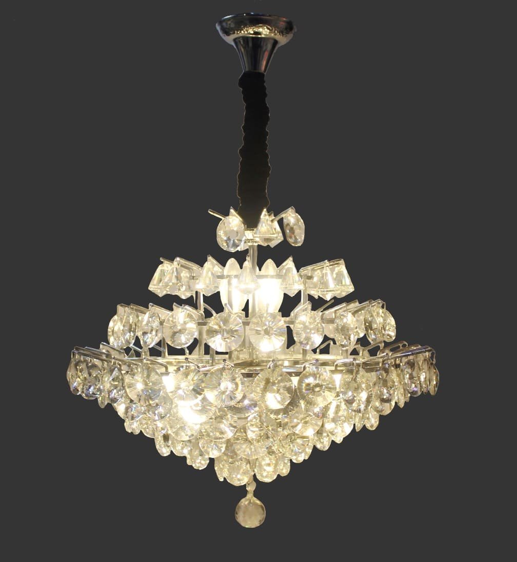 This very nice crystal chandelier and its body is made of metal. We can put it at home, bedroom, hall and office.