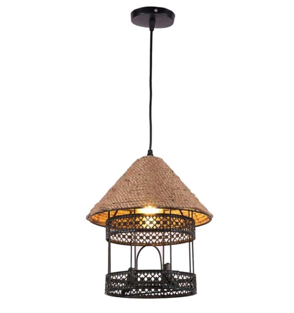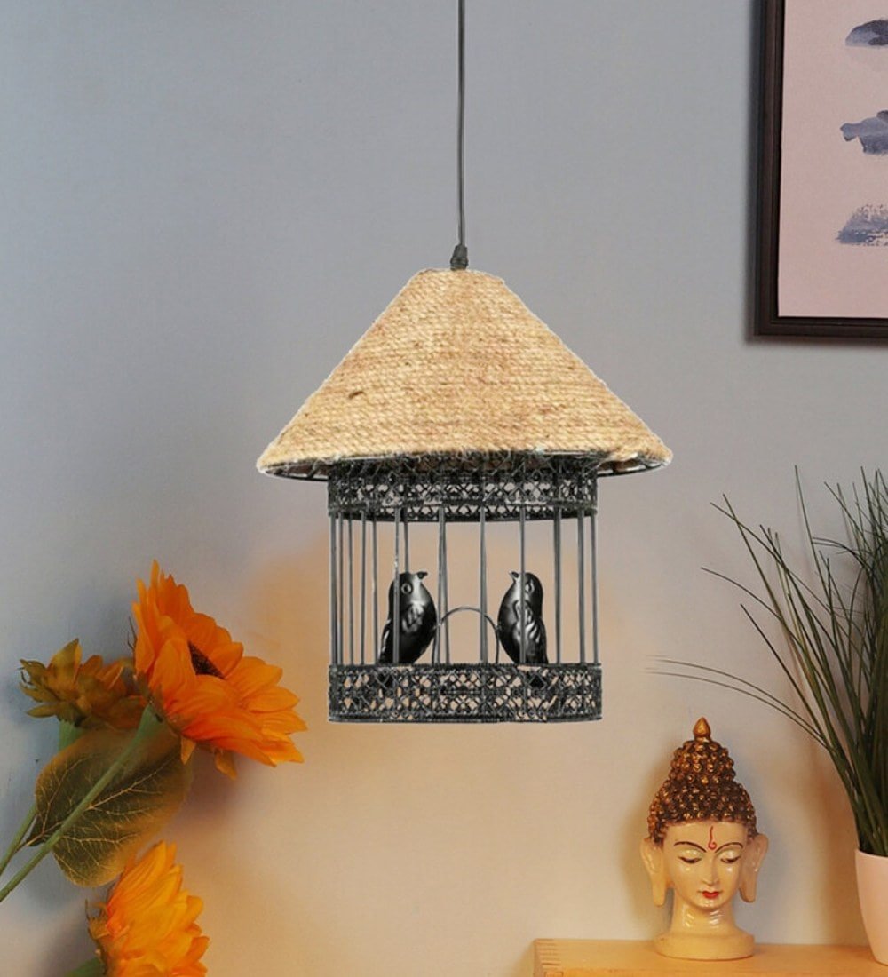 The Single Black Finish Metal Hut And Bird Craft Design Hanging Light