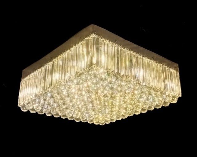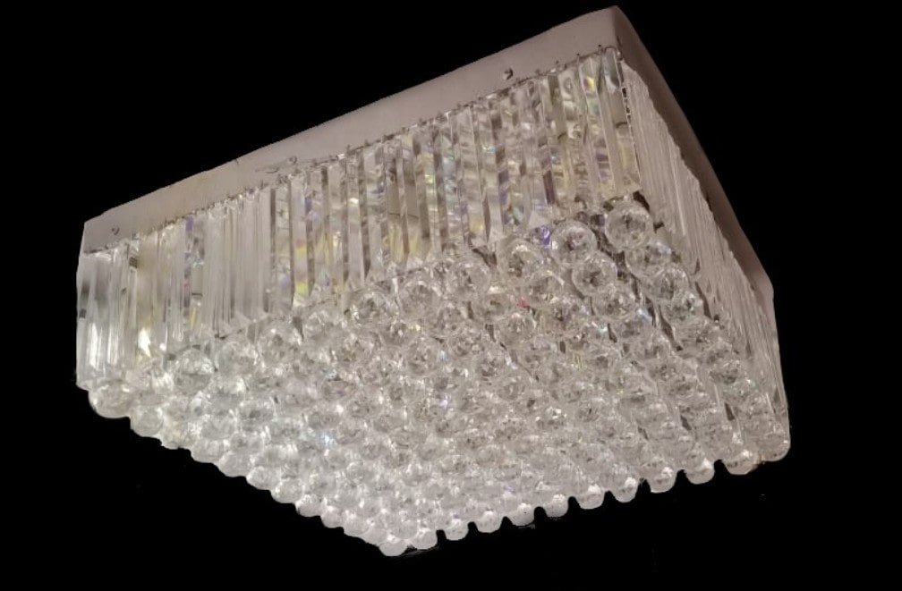 The Square Shape Silver Chrome Finish Customize Crystal Design Ceiling Mount Chandelier For Your Living Room And Bedroom
