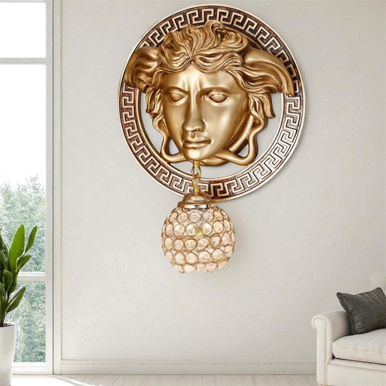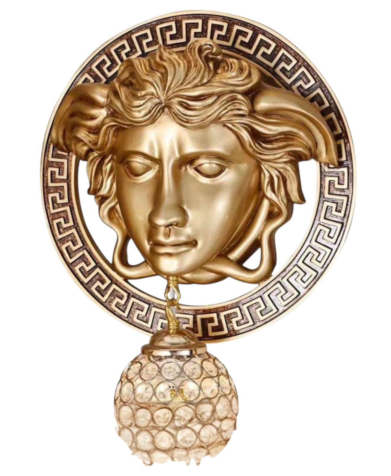 Versace Medusa Logo Sculpture Wall Mount Lamp With Tiffany Glass Ball Pendant