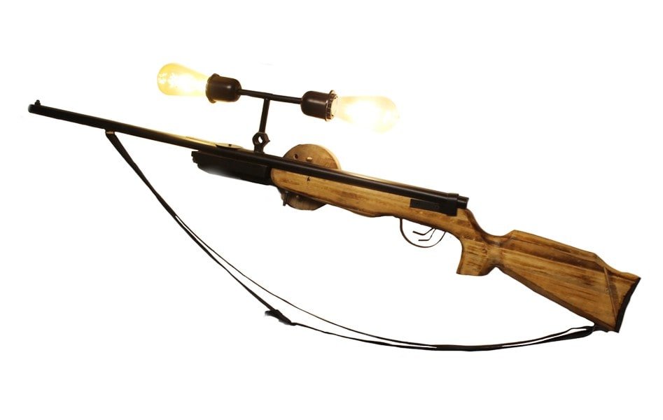 Wood Base And Metal Finish Big Size Artificial Gun Wall Dacor Lamp Lighting For Home Interior