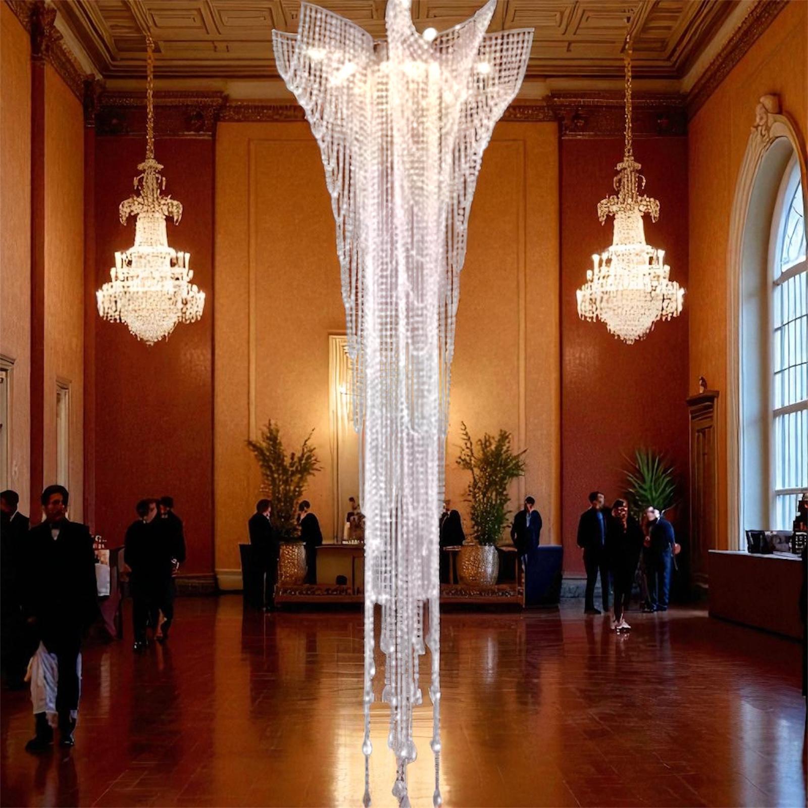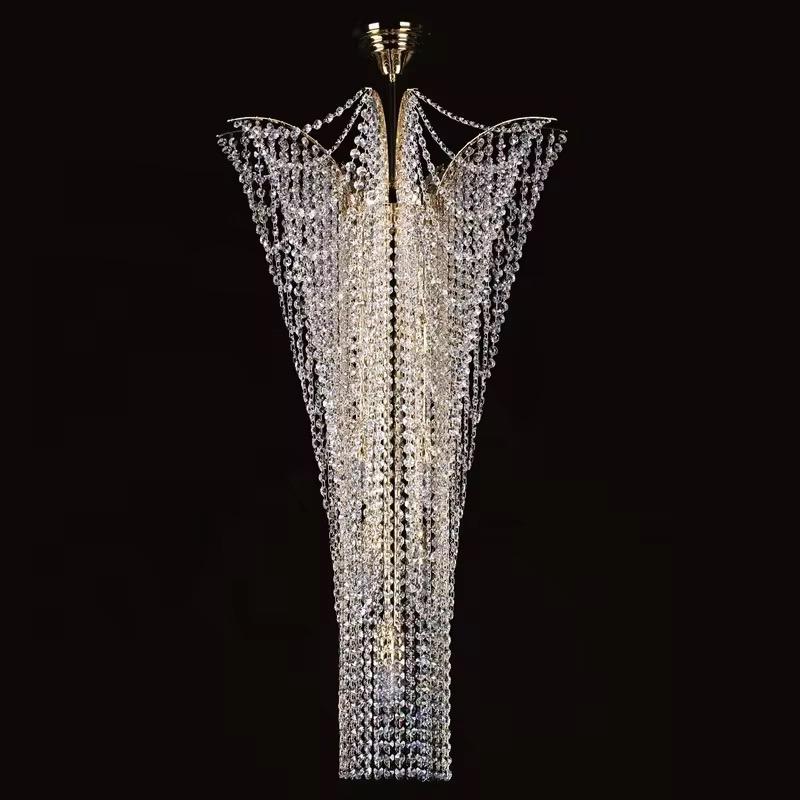 Elevate your interiors with the elegant and flowing design of the BLX88540 chandelier. Crafted from premium K9 or Egyptian crystals, this chandelier cascades in graceful strands of brilliance—ideal for villas, hotel lobbies, staircases, and double-height spaces. Finished in a radiant gold or modern chrome, it offers timeless luxury with custom flexibility.